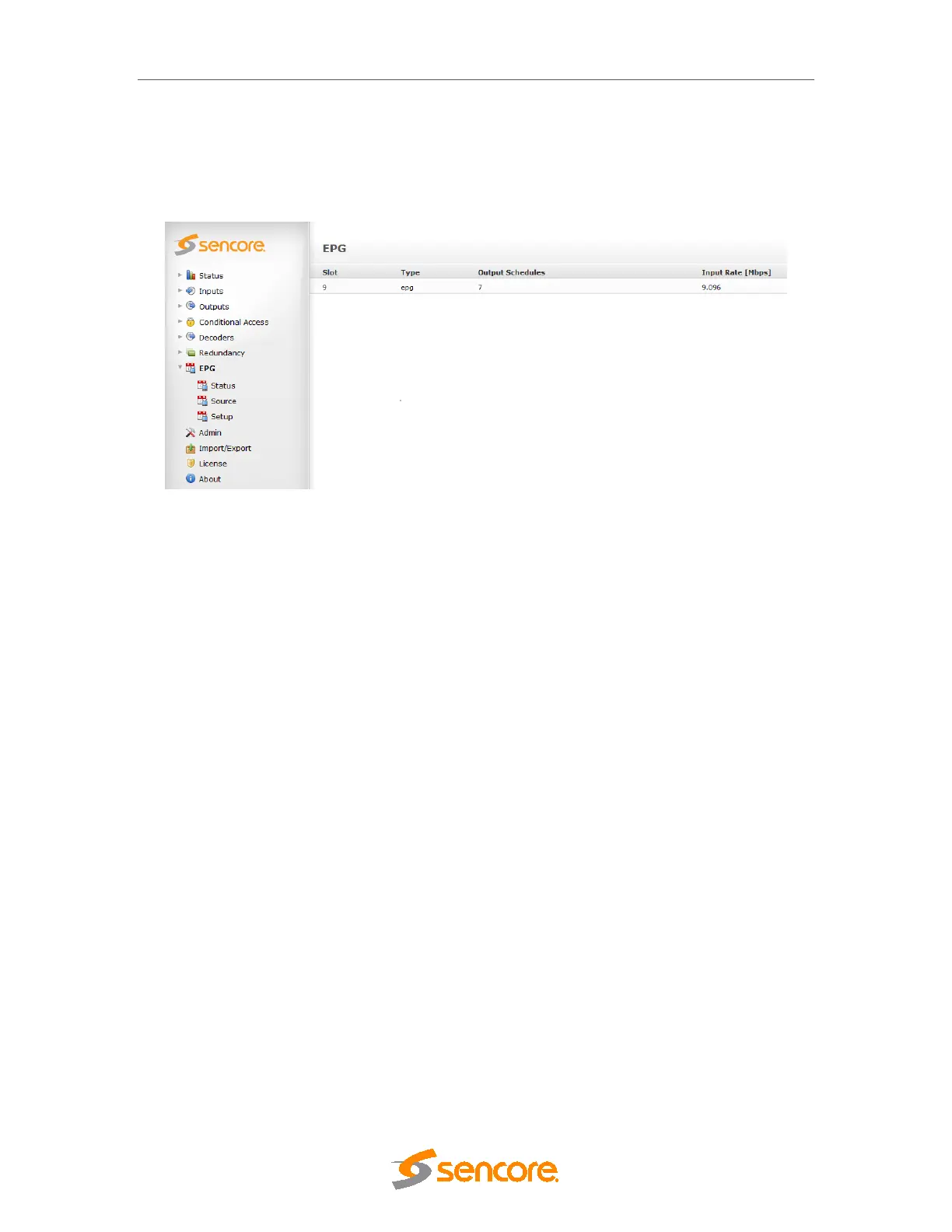 The EPG Status node (Figure 9.4) displays all outgoing transport streams carrying EPG data.