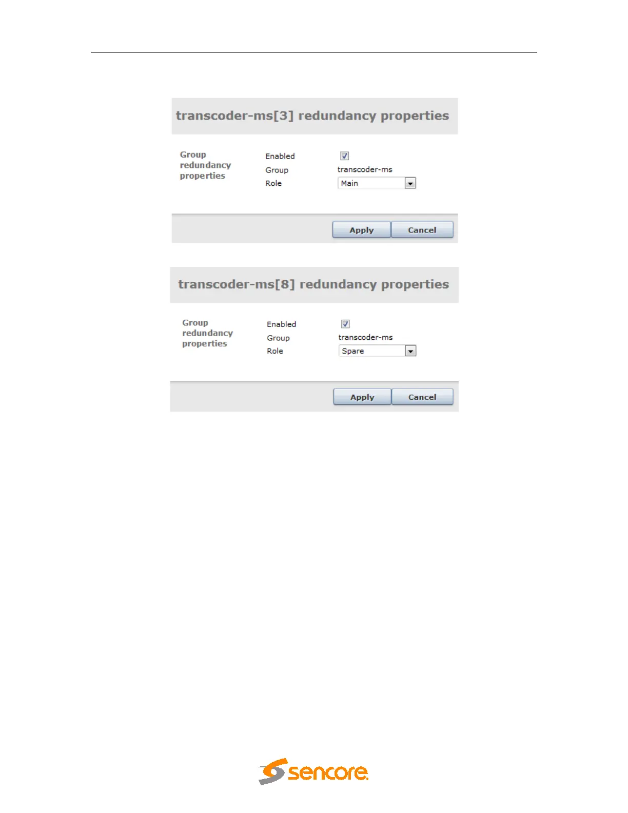 Figure 10.24 Redundancy group properties-SPARE Universal Transcoder-Multiscreen
