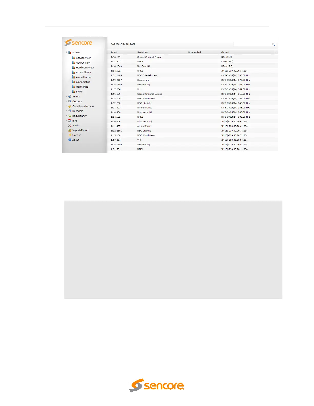 Service View shows all configured services by default and the following information is