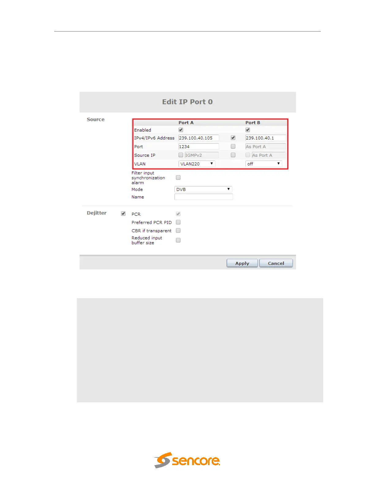 to be different from port A, the checkbox can be enabled and the new parameter entered.