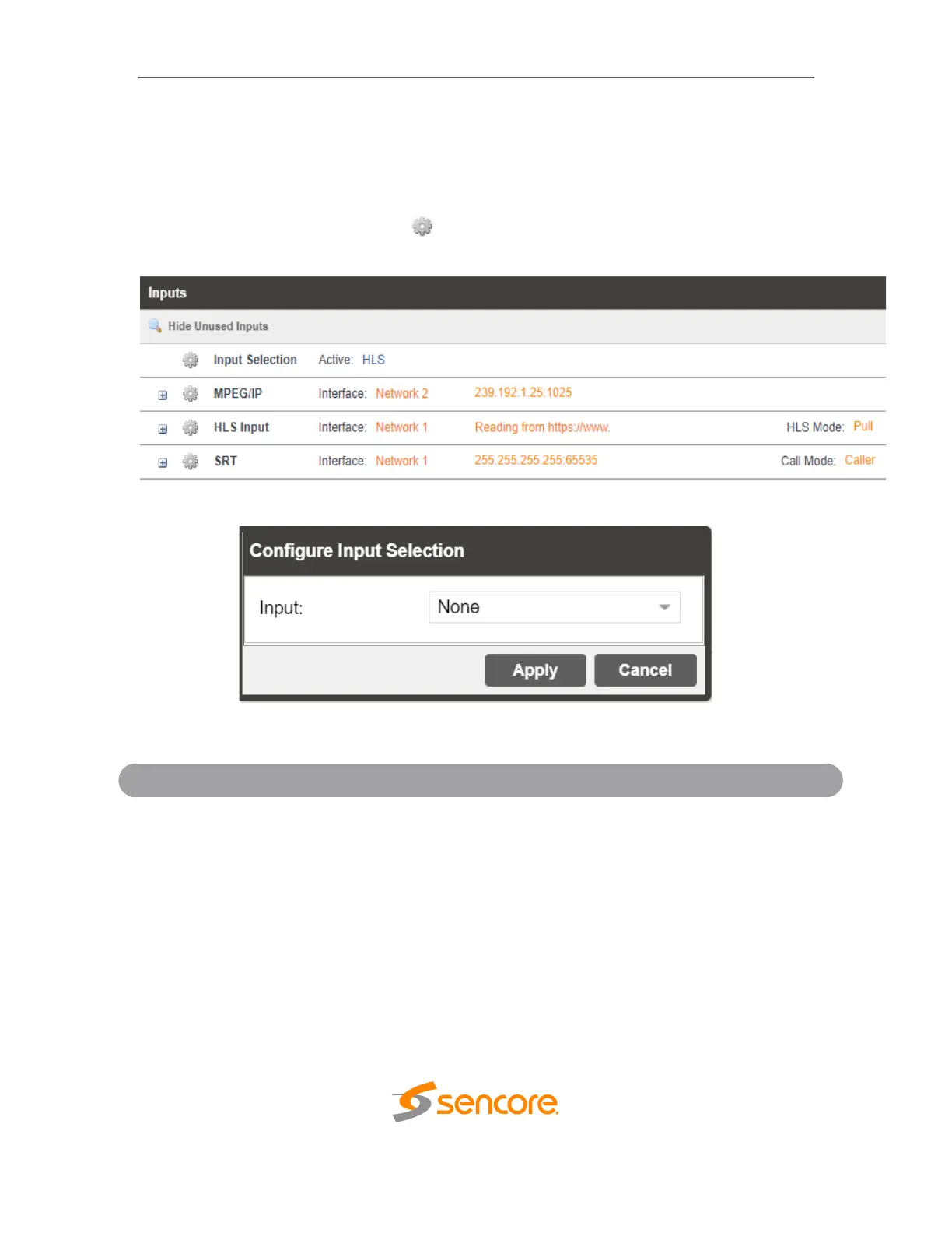 This menu allows the user to configure a input selection. Even though other inputs may