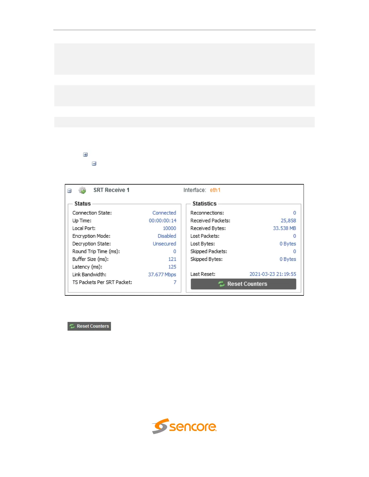 Click the icon by the SRT input to view information about the incoming IP stream.