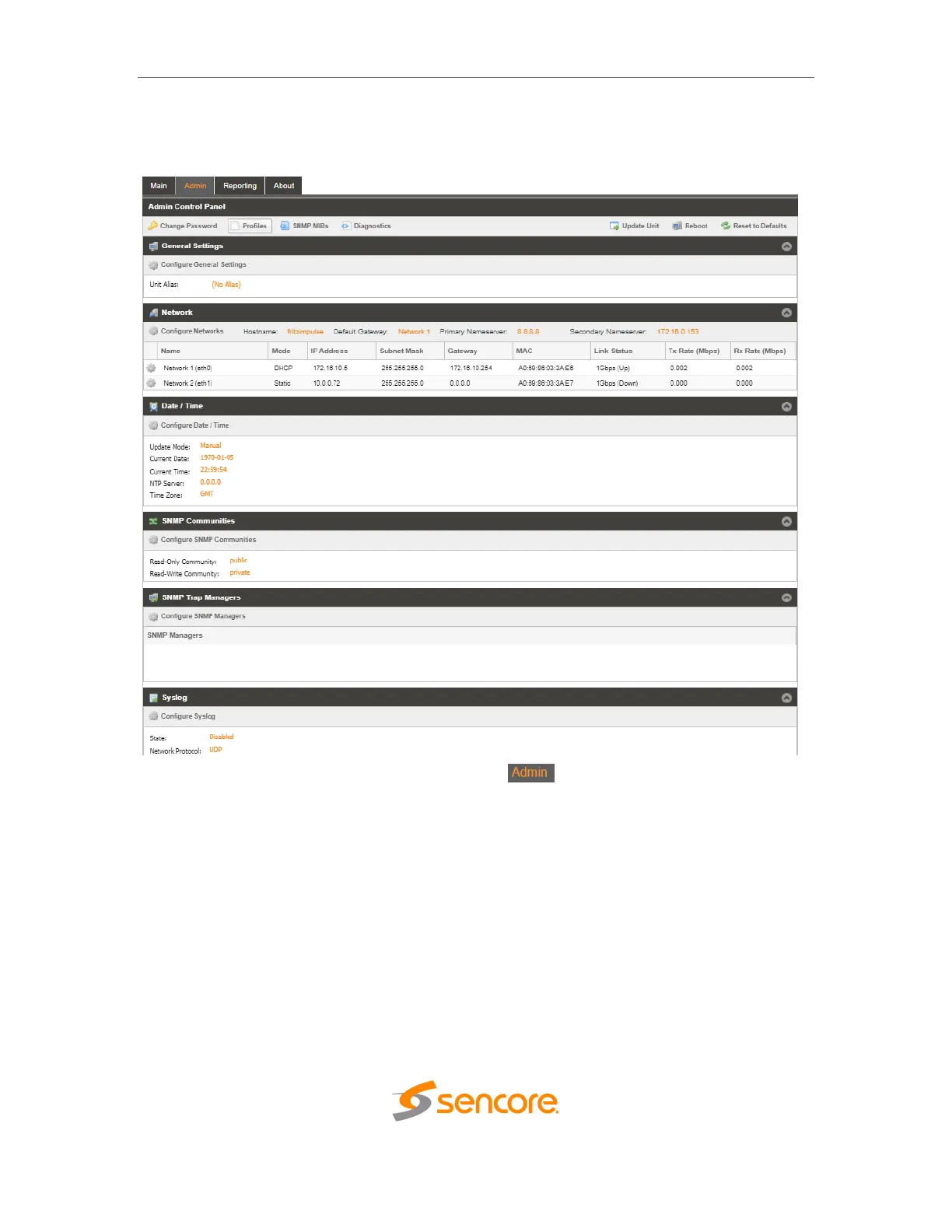 Sencore Impulse 300D - Admin Panel