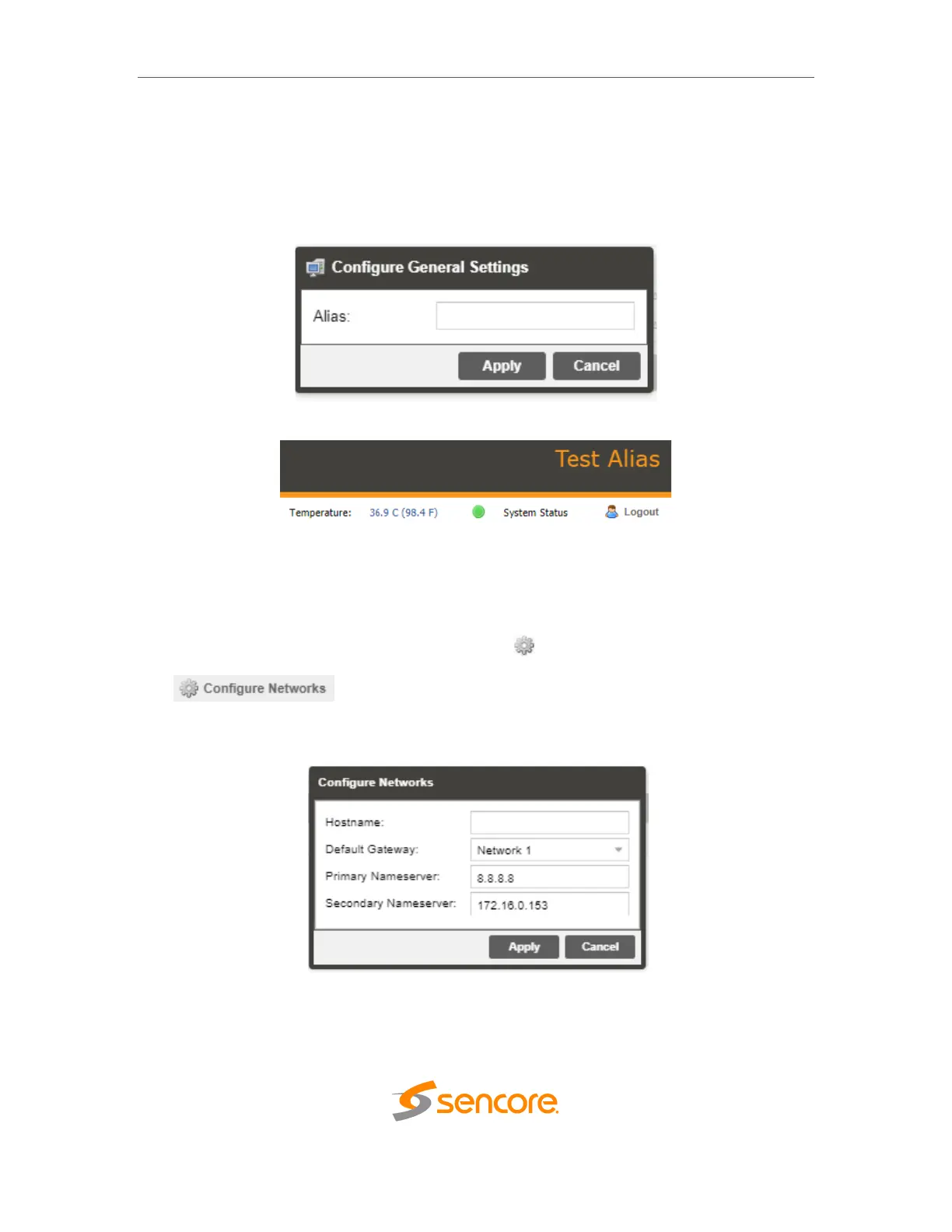 Nameserver addresses. The hostname and default gateway may also be configured