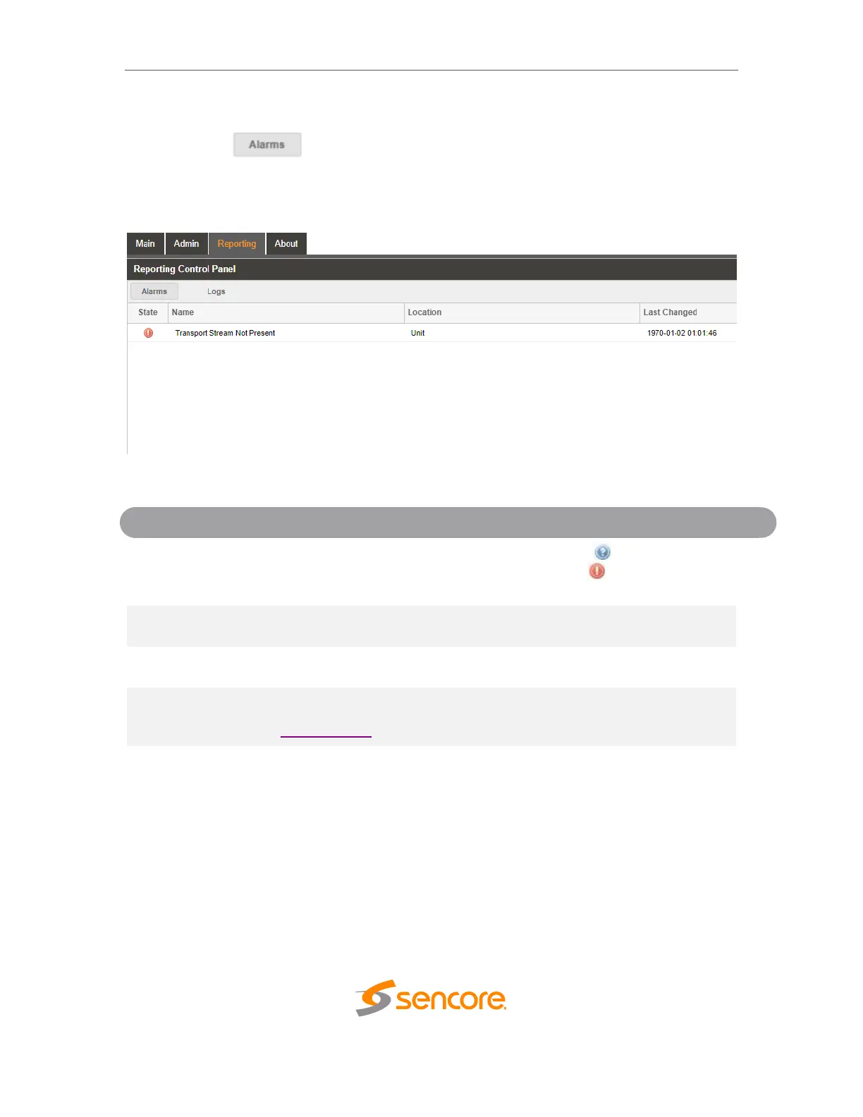 This column displays the nature of the alarm. The icon means the