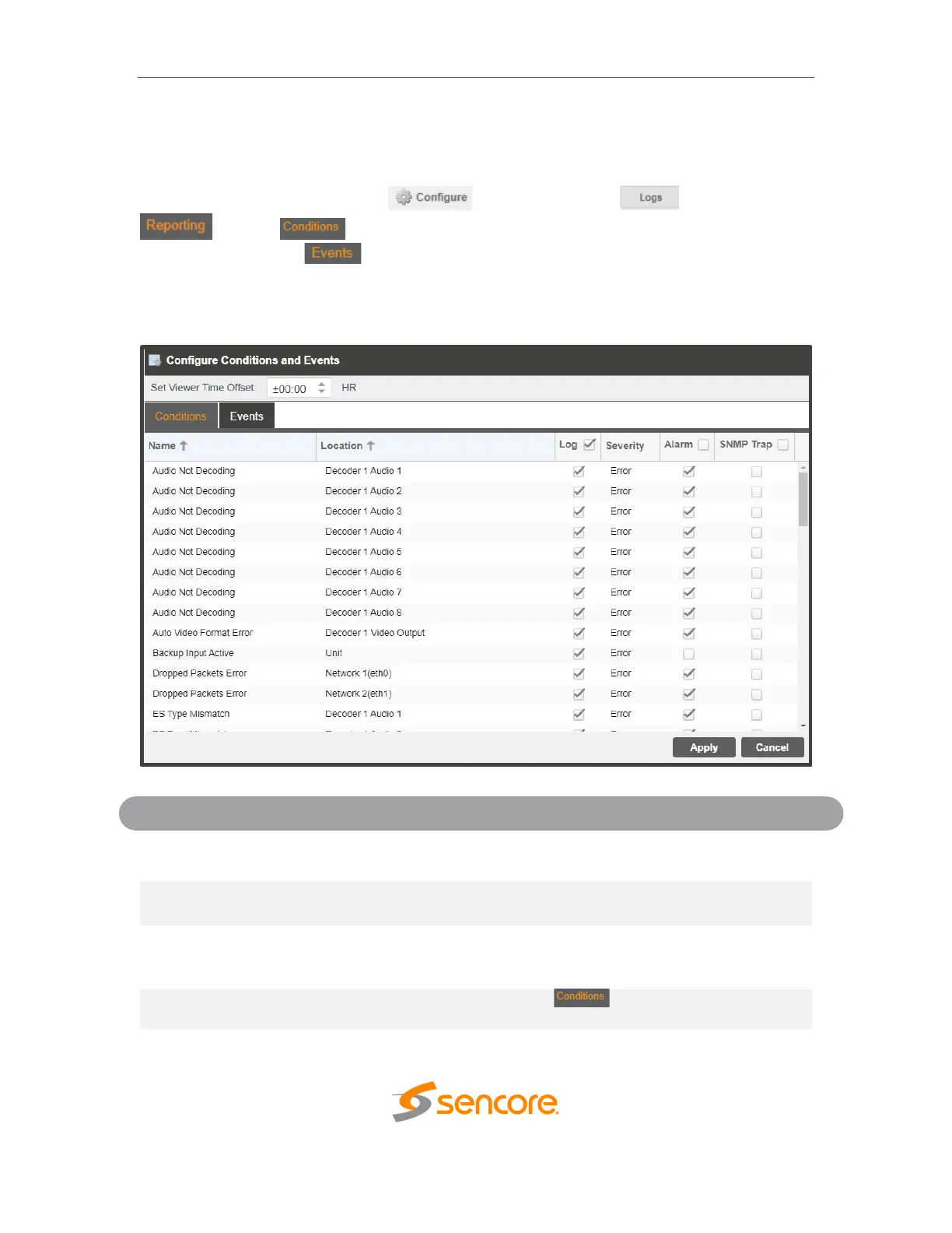 can be hidden, set to send SNMP traps or close a relay when active. In order to