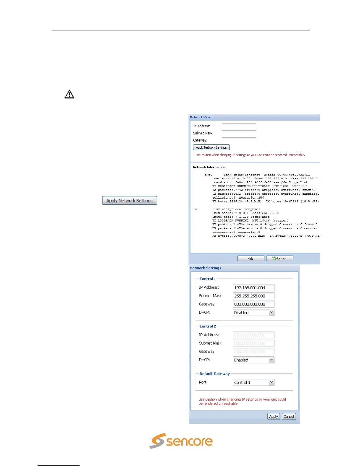 Warning: Use caution when changing IP settings or the unit may be