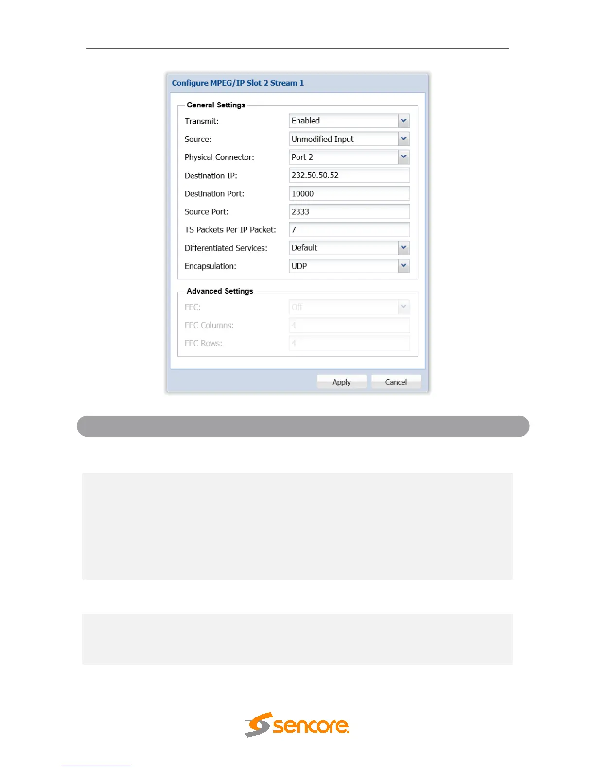 port must match the receiving device’s port. When