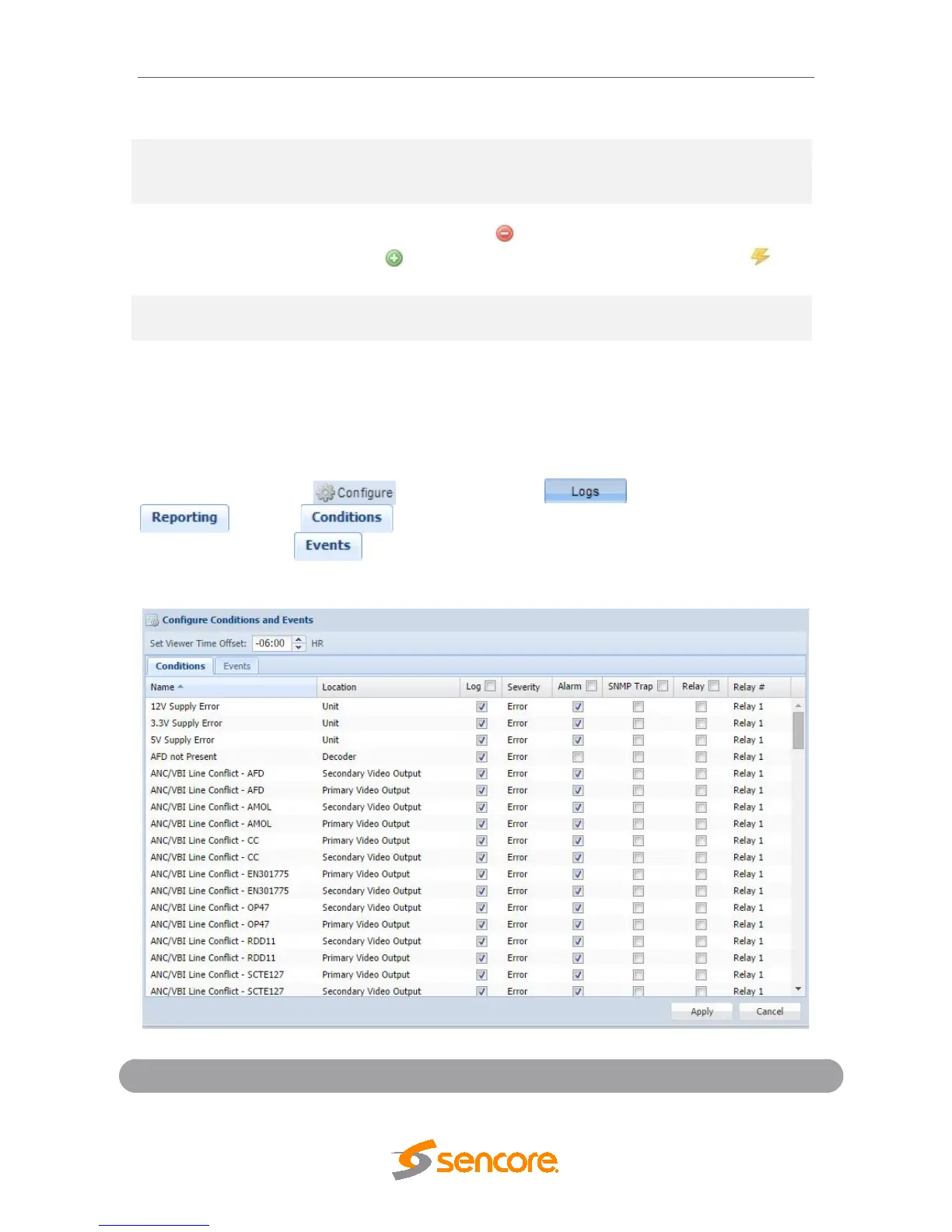 The MRD 5800 allows the user to configure alarms and events. Events and alarms can