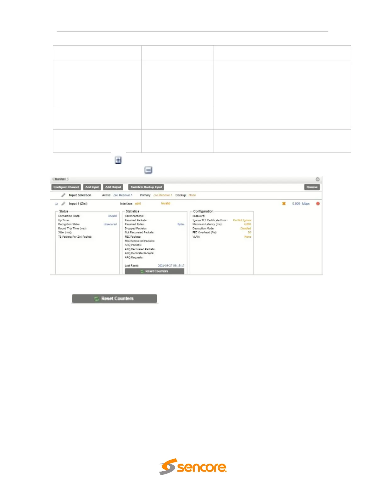 stream. Clicking the icon will hide the Zixi receive statistics.