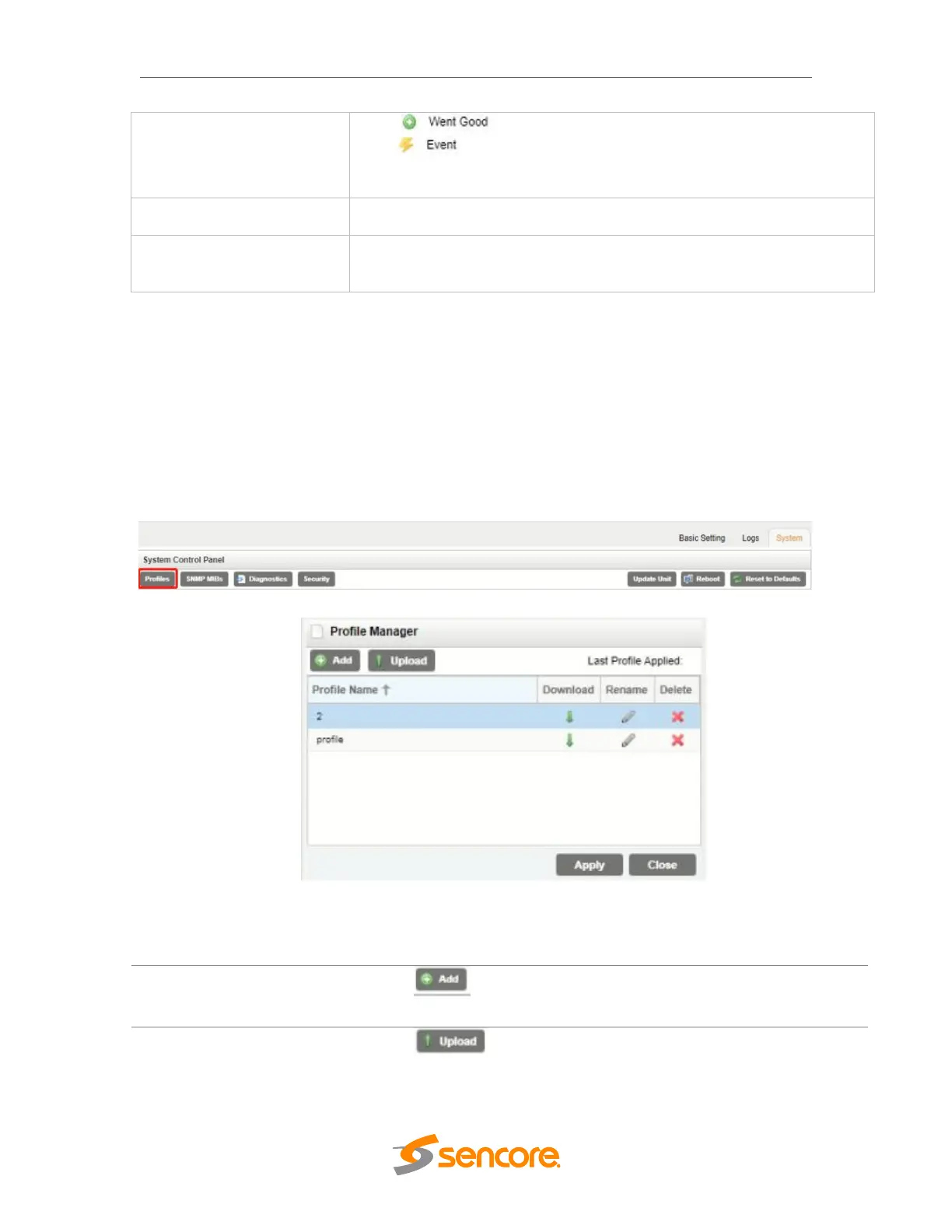 Used to upload a profile to the module