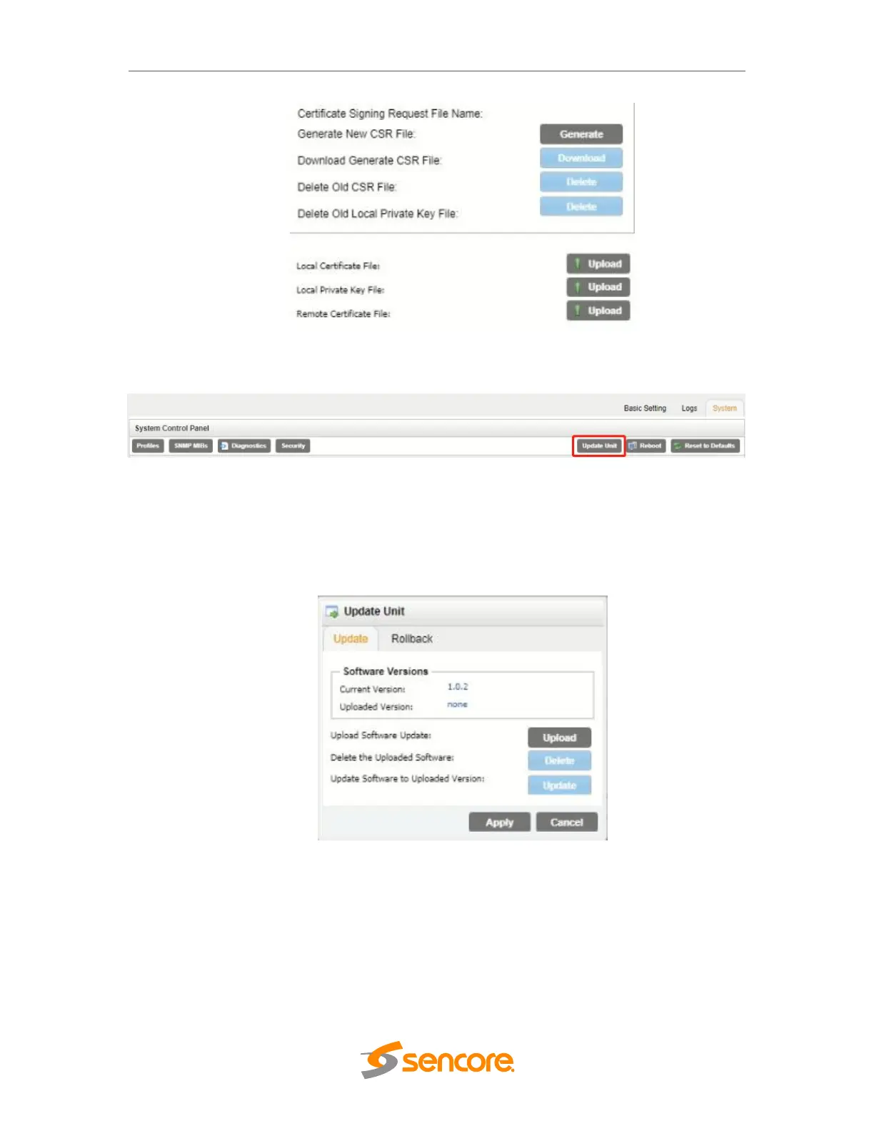 team. The ‘Update Unit’ button is in the top right corner of the System Control Panel.