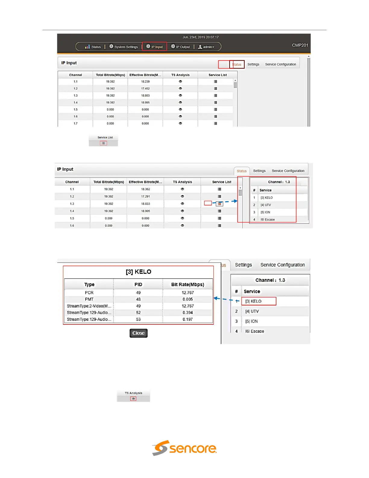Clicking on the eye icon under the TS Analysis button to display the information on