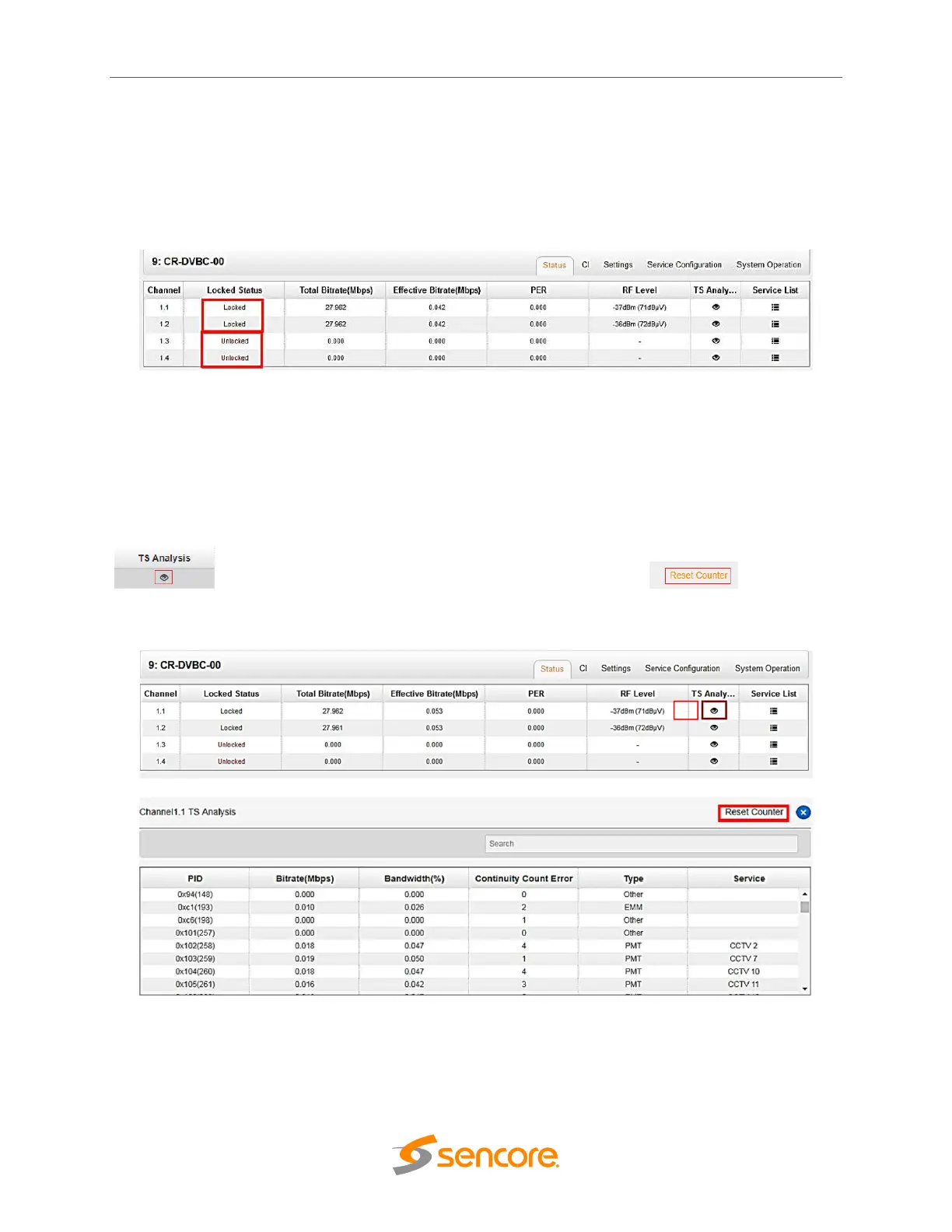 status and Effective Bit Rate in Mbps which show the actual bitrate on each received Channel.