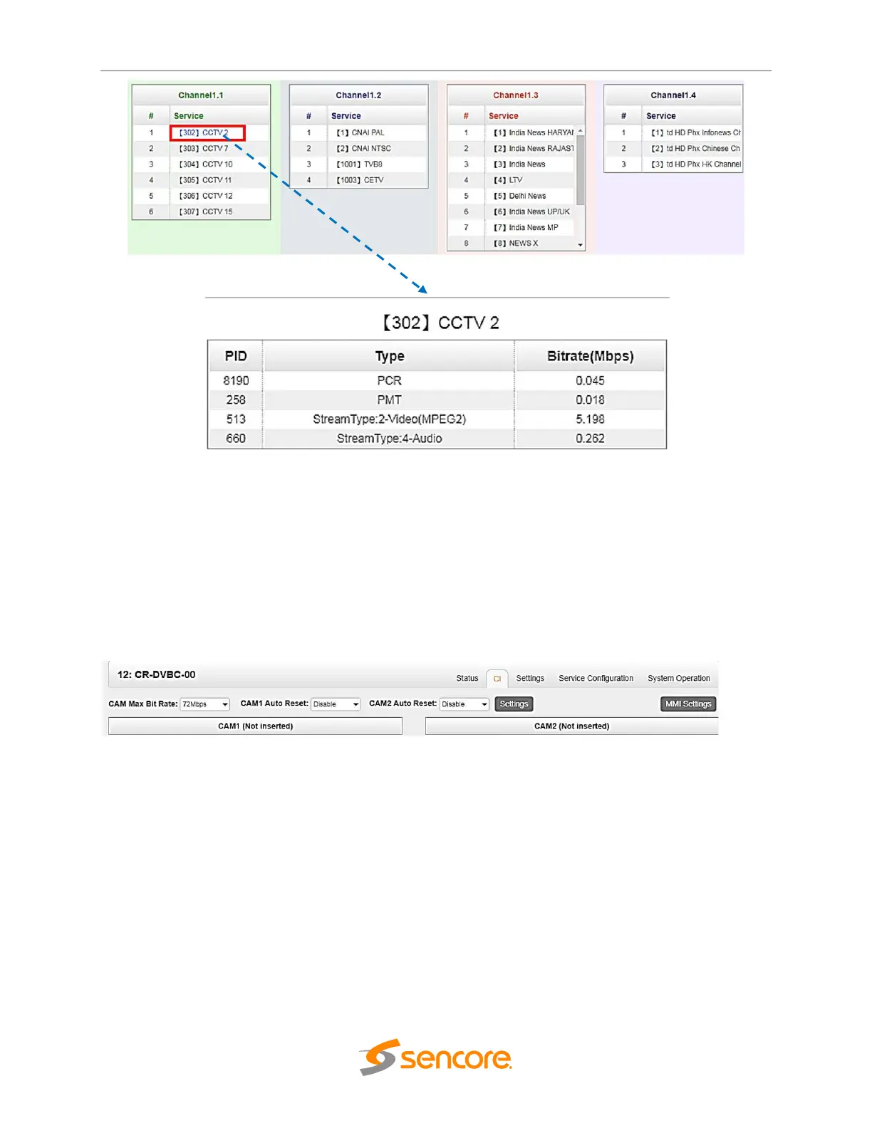 services depending on the capability of the Smart Card. You can select the CAM Max Bit Rate