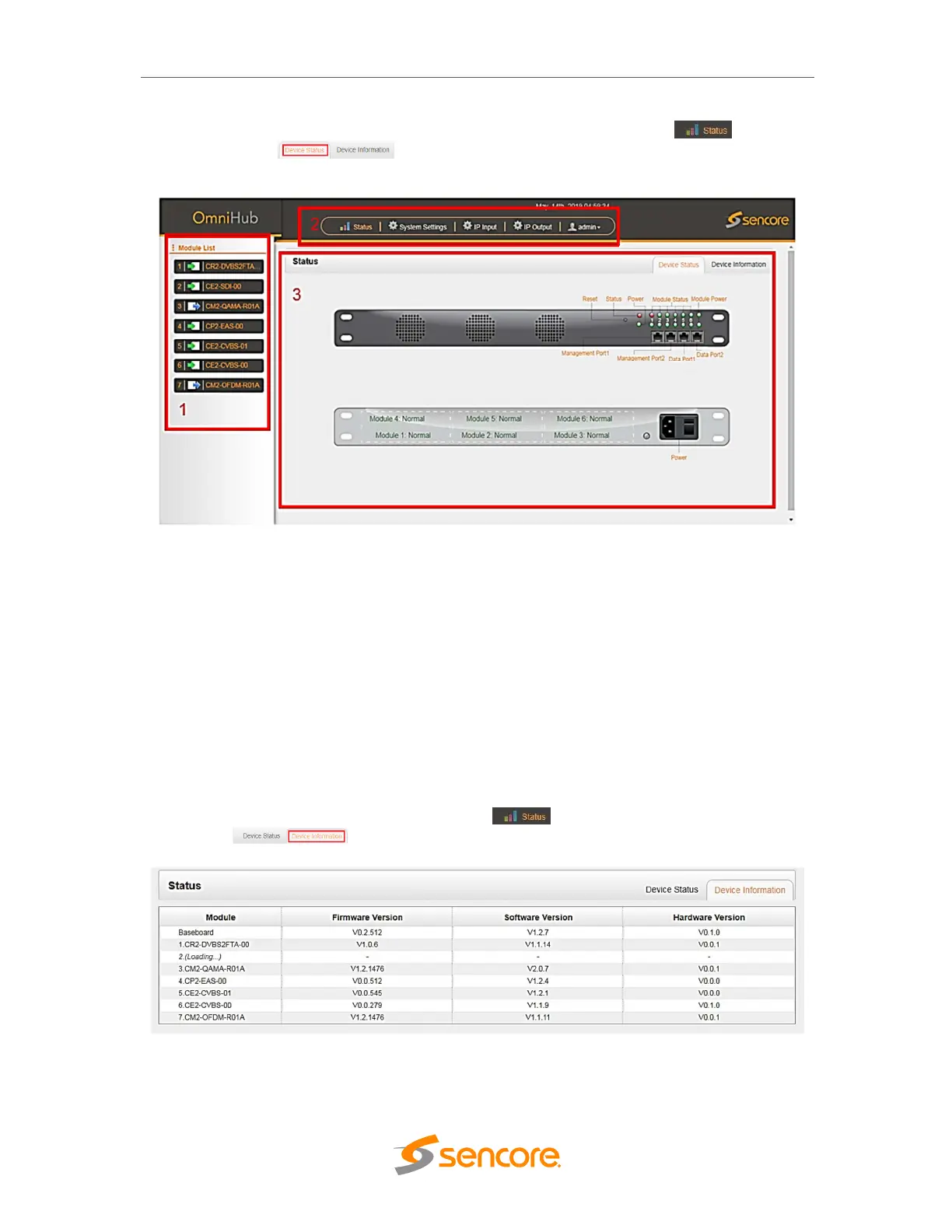 Information status page by clicking the Status button and then Device