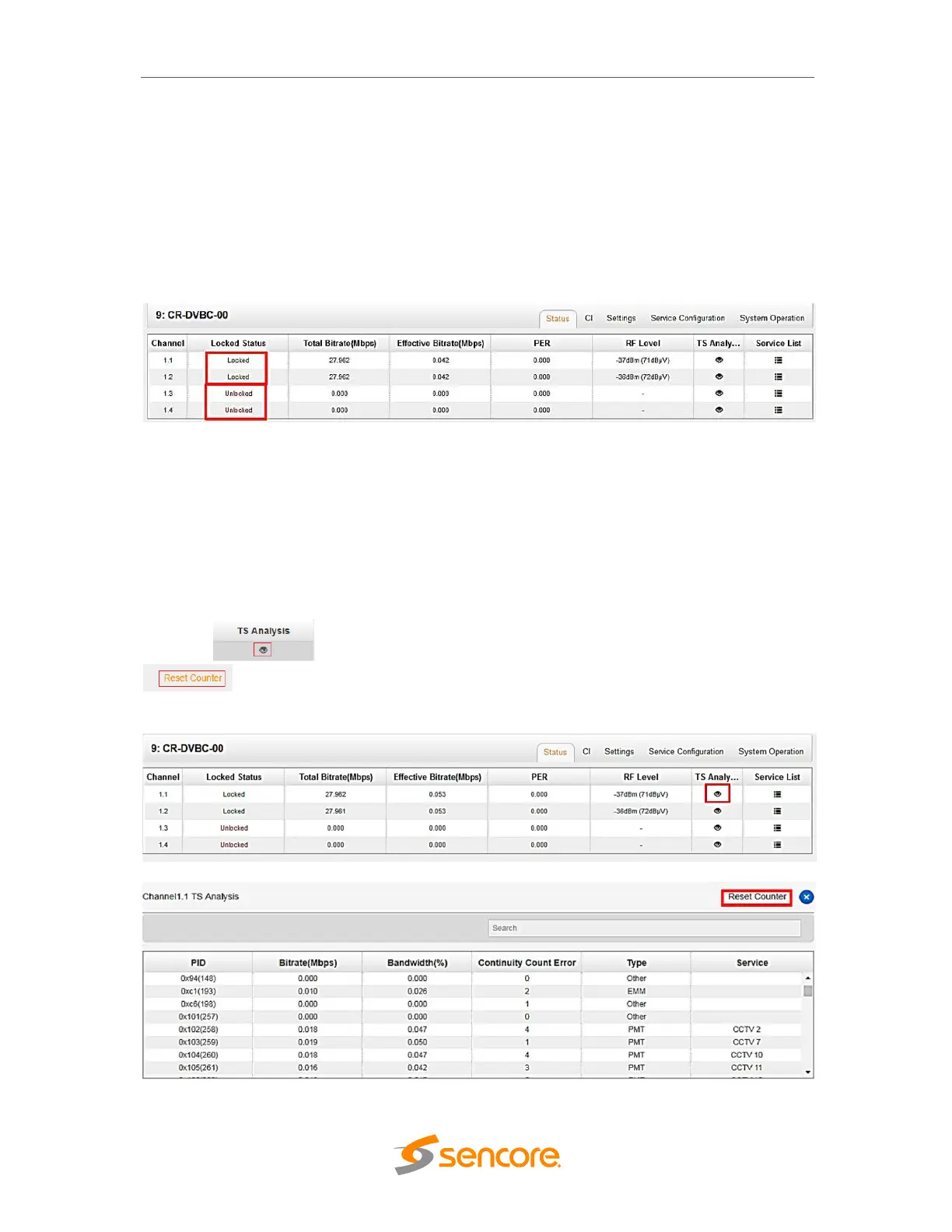 Locked Status show the status on each channel, the Status will show Unlocked if there