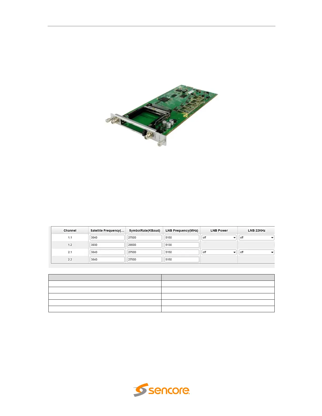 The table below show the parameter range on each field. For the LNB power, channel 1.1