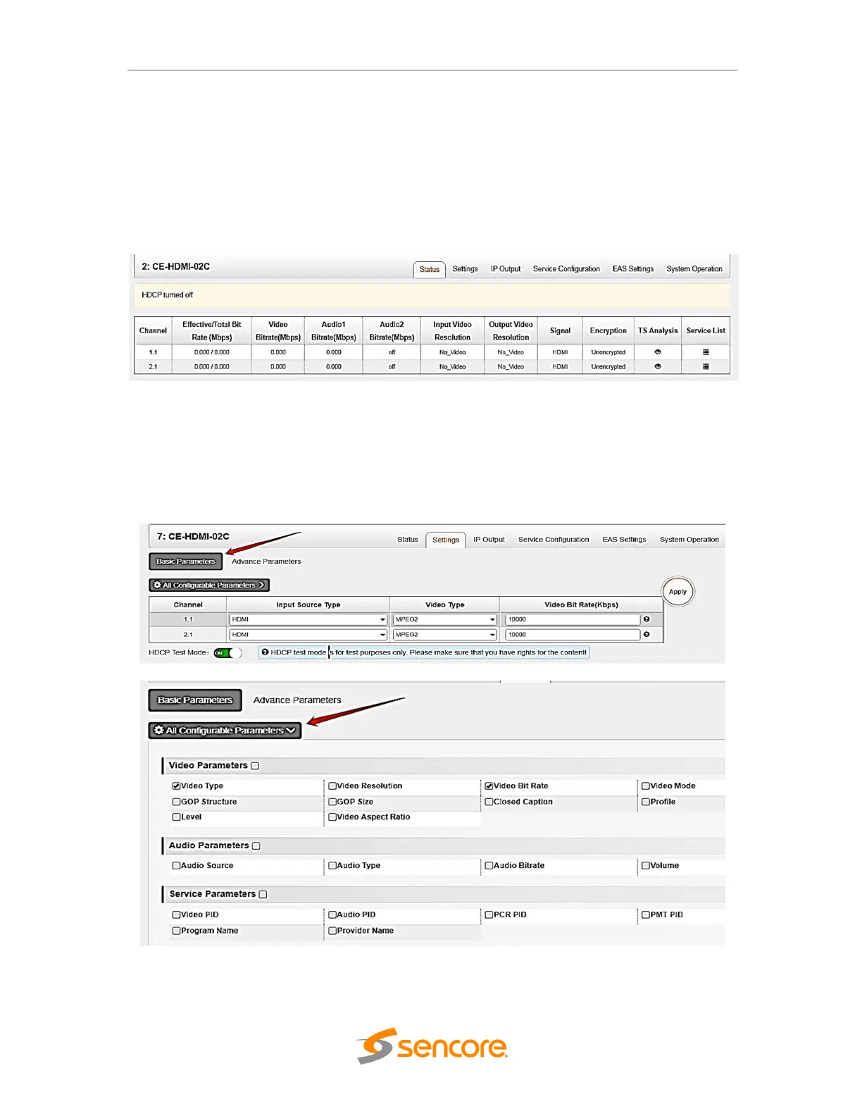 Click All Configurable parameters in the line to set encoding parameters.