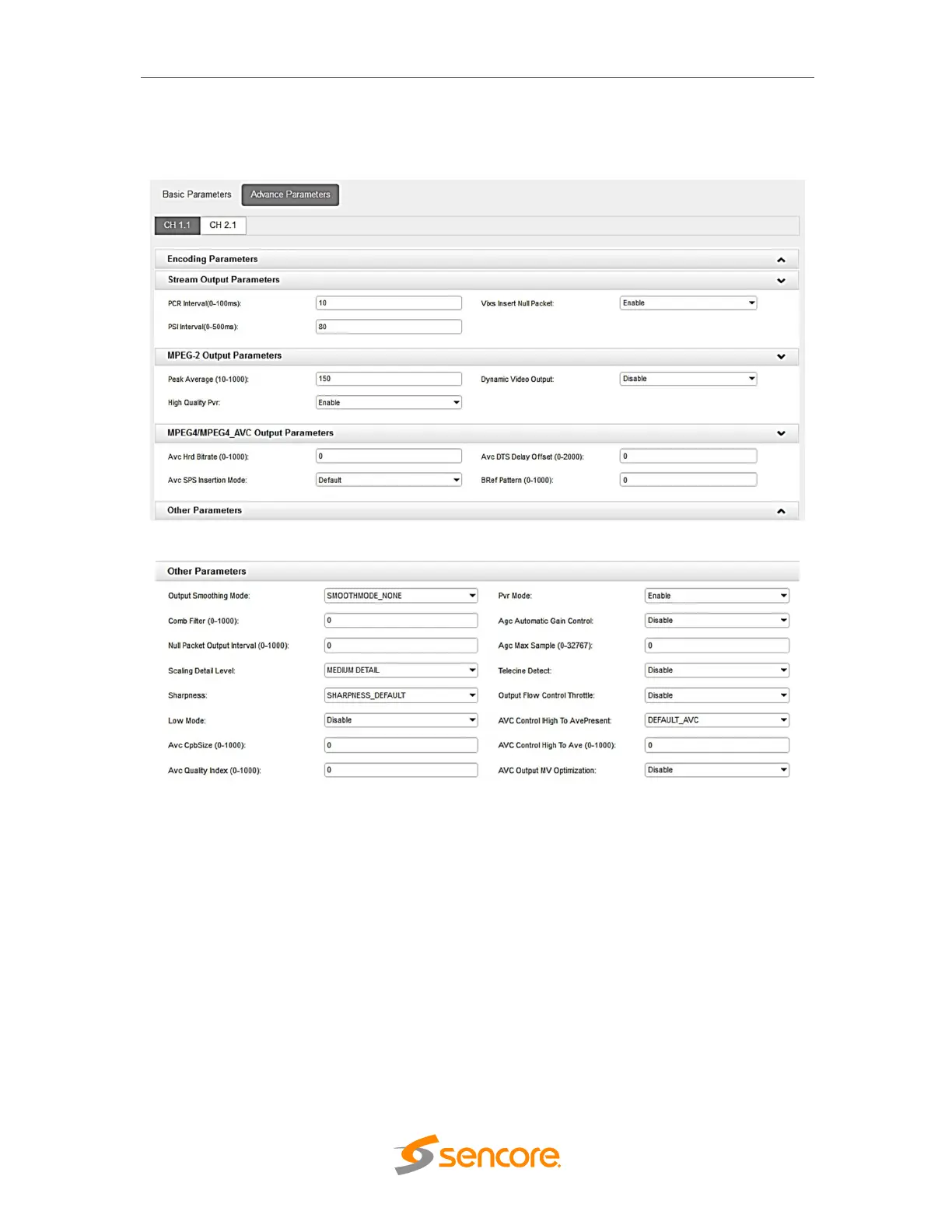 Here showed the parameter for the Stream, MPEG2, and MPEG4 Output.