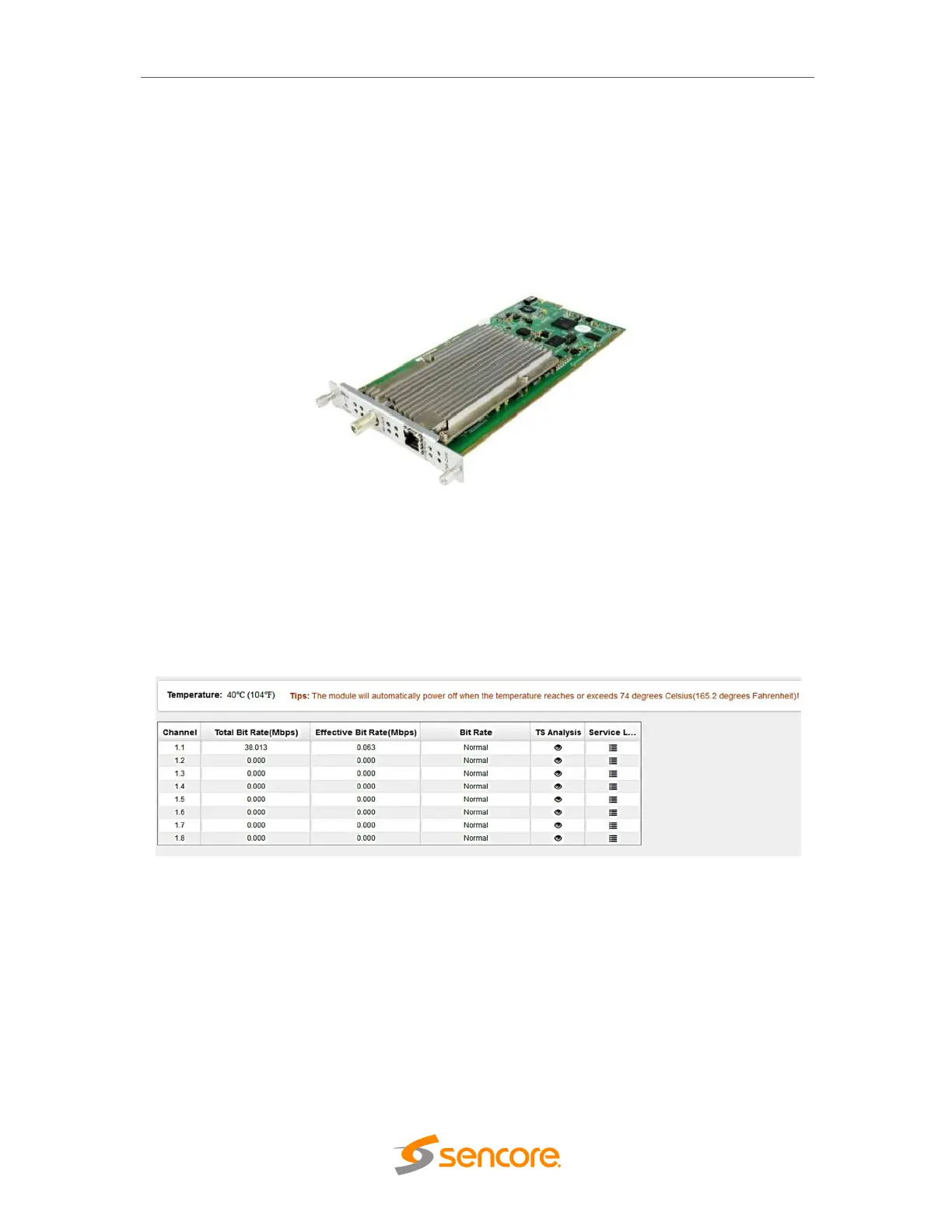 For the Status of QAMA-00. This show the Total Bitrate of a TS and the Effective bitrate,