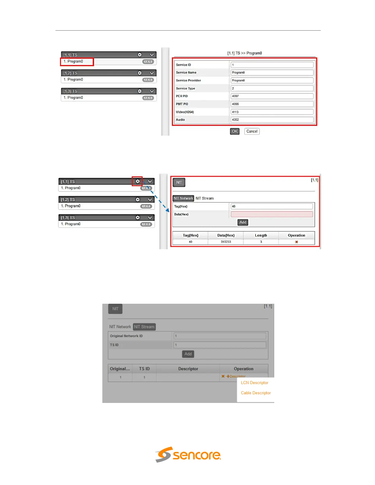 created. e.g., If the NIT is created in TS ID 10 with frequency 539MHz and 5057Kbaud