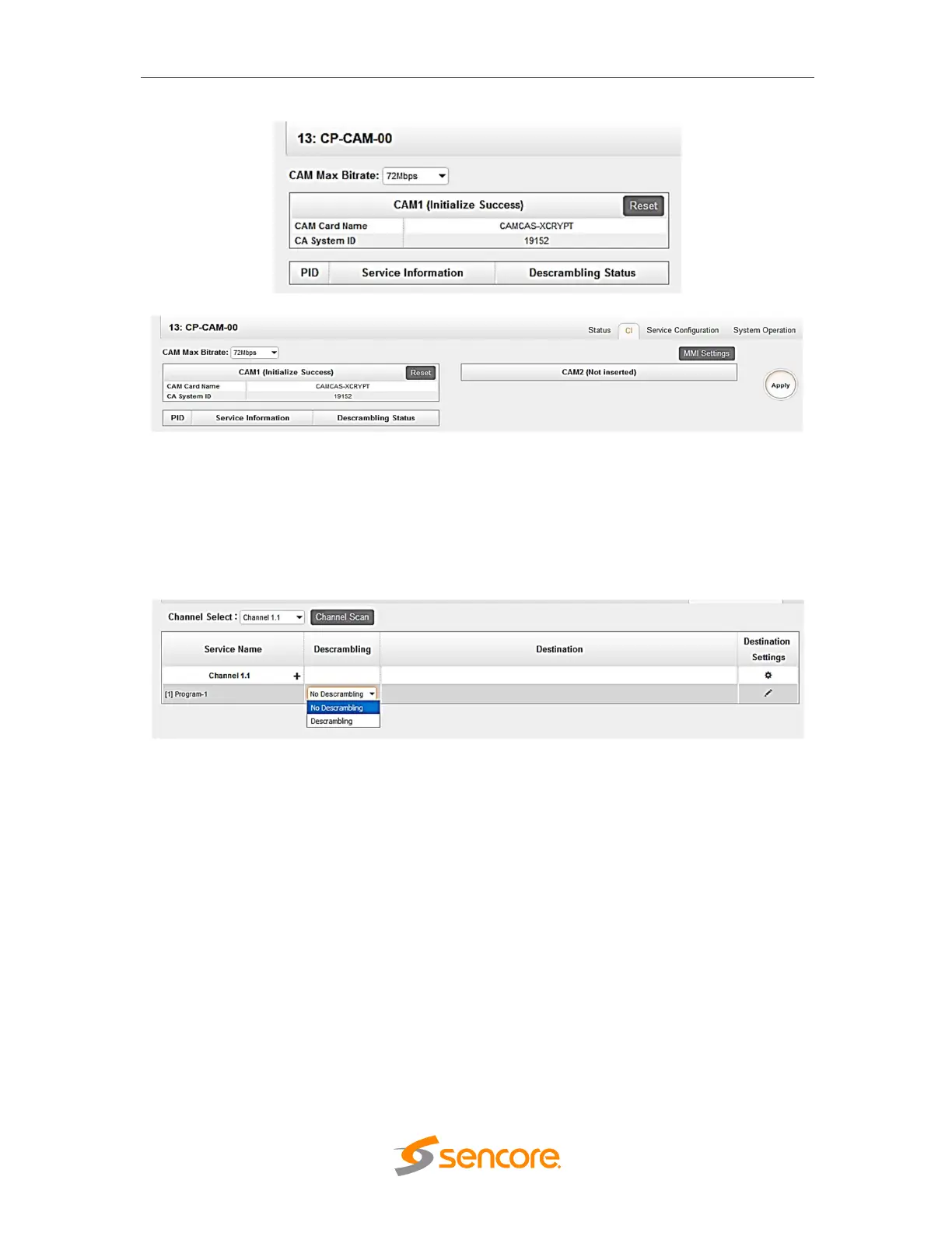 For the Service Configuration. You can select the service either Descrambling or No