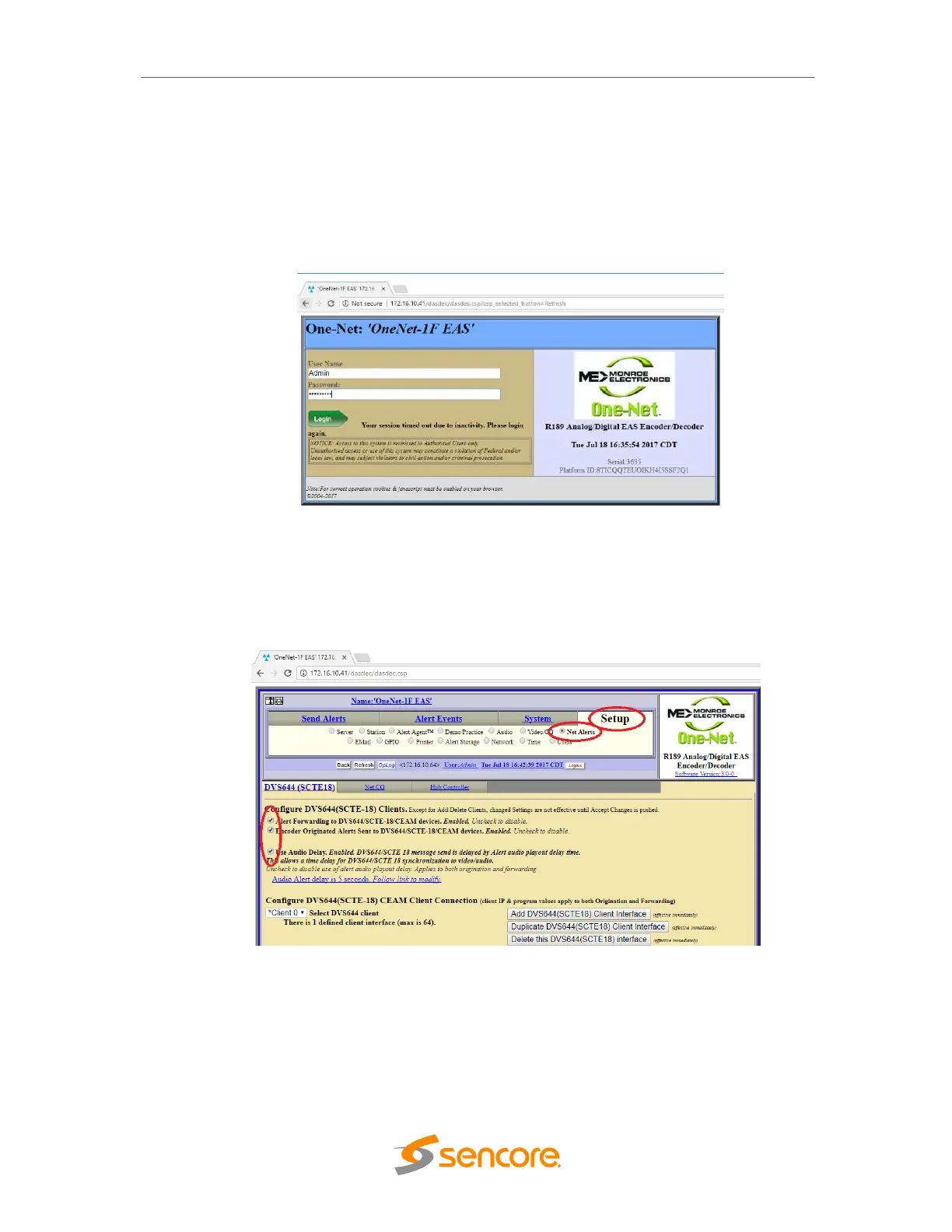 3. Configure the DVS644 (SCTE18) settings in the Monroe exactly like are shown