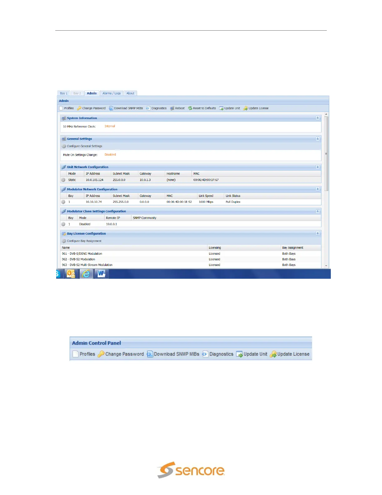 The Admin tab located after the two bays in the web interface allow system specific settings to be
