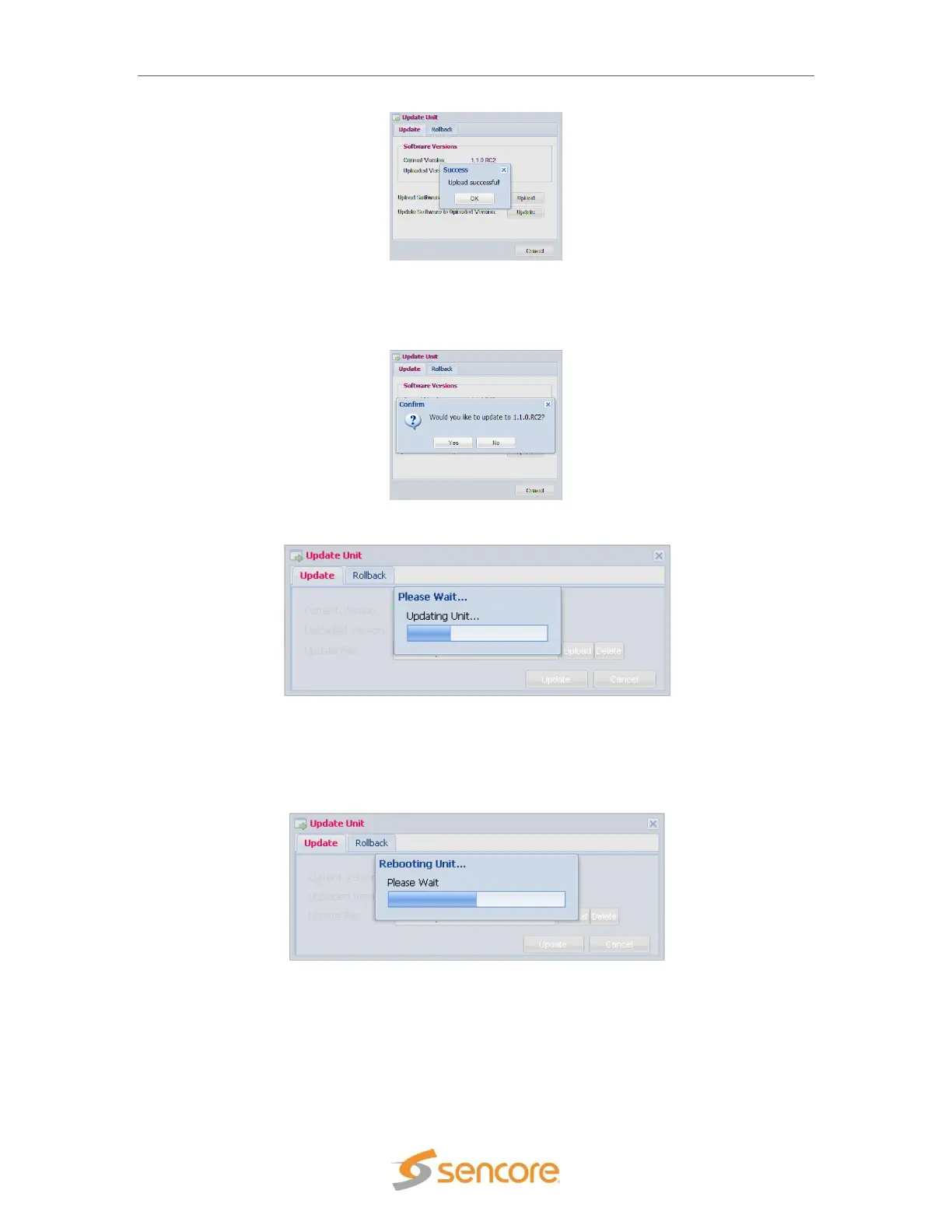 on the unit. The roll back feature will restore the unit back to the previous state before the latest