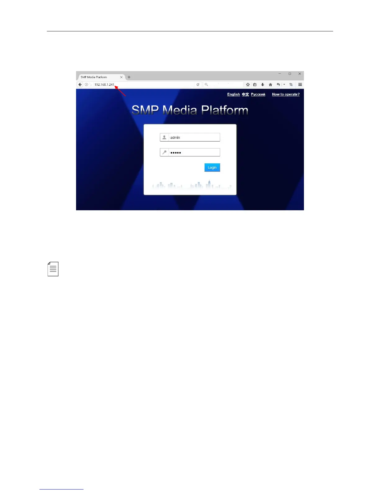 Type the SMP management IP address into the URL field of any recommended browser (IE8 or