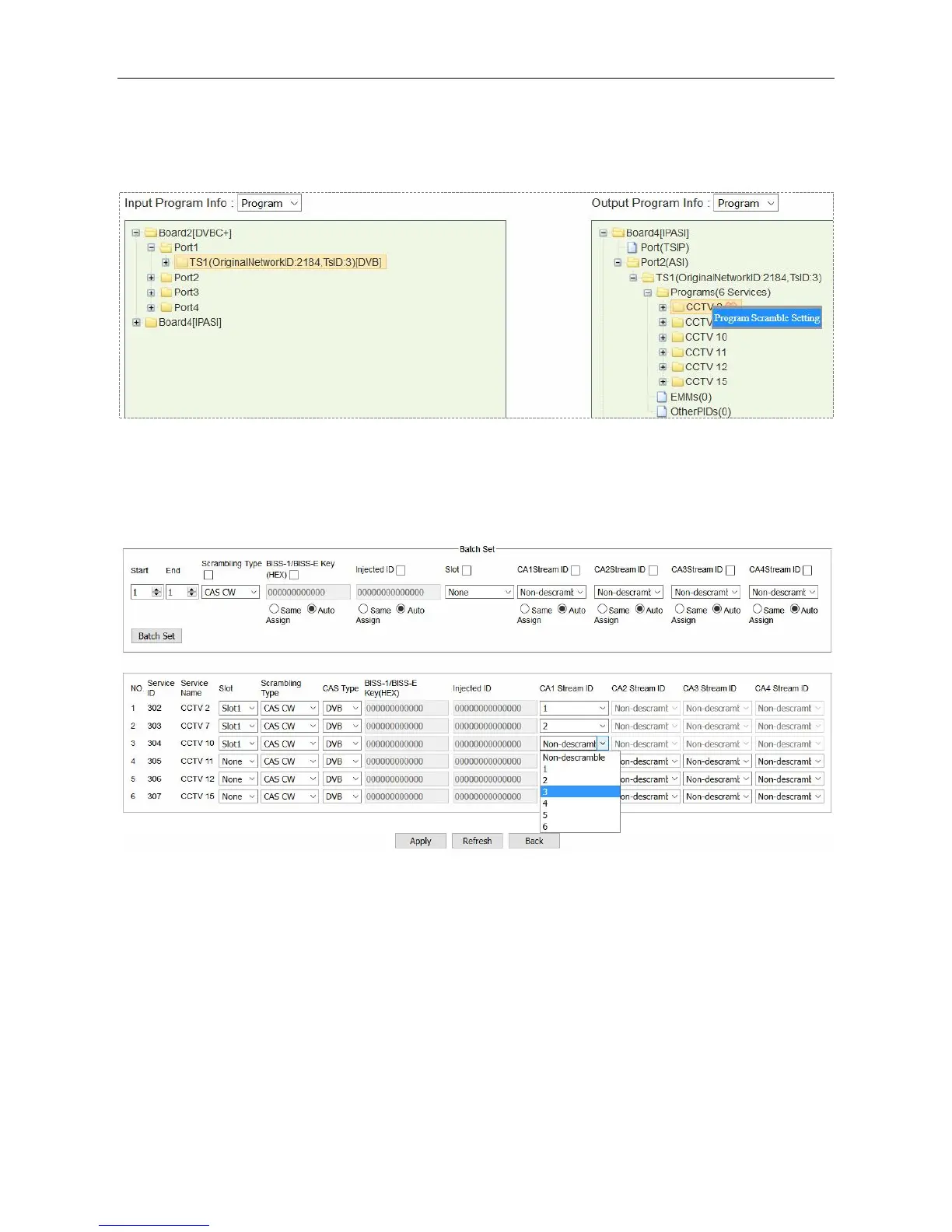 Select Slot (the slot in which Scrambler+ is installed), CA Stream ID for each program and click