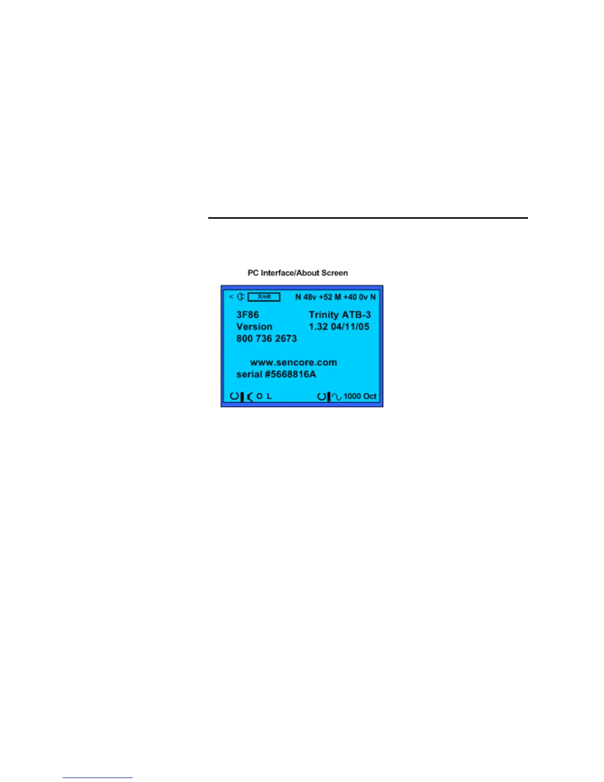 The PC Interface/About screen provides unit and manufacturer information plus allows RTA, ETG graph