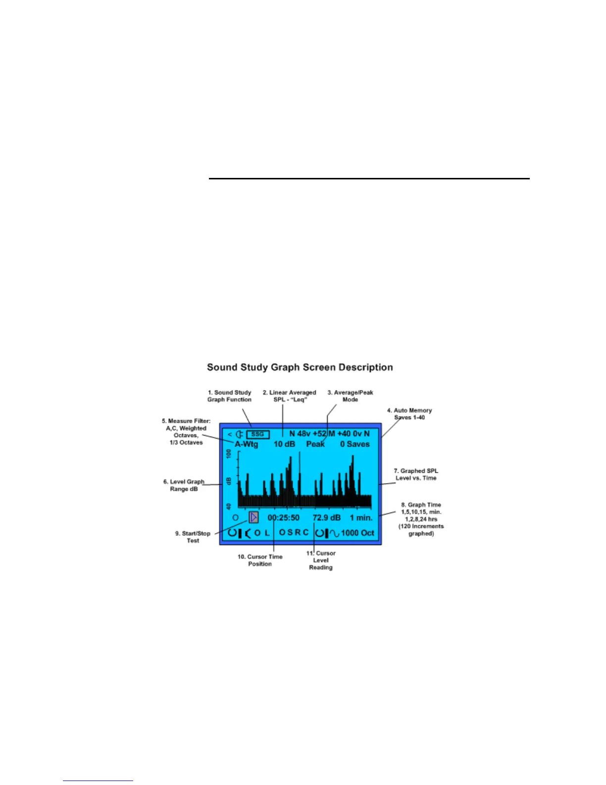 The Sound Study Graph function graphically displays the SPL level over a period of time