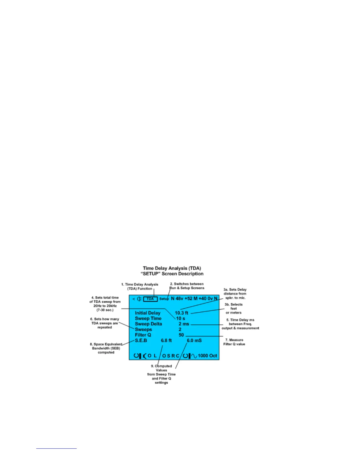 TDA function, the Setup screen is displayed first. This screen has the fields that you use to setup