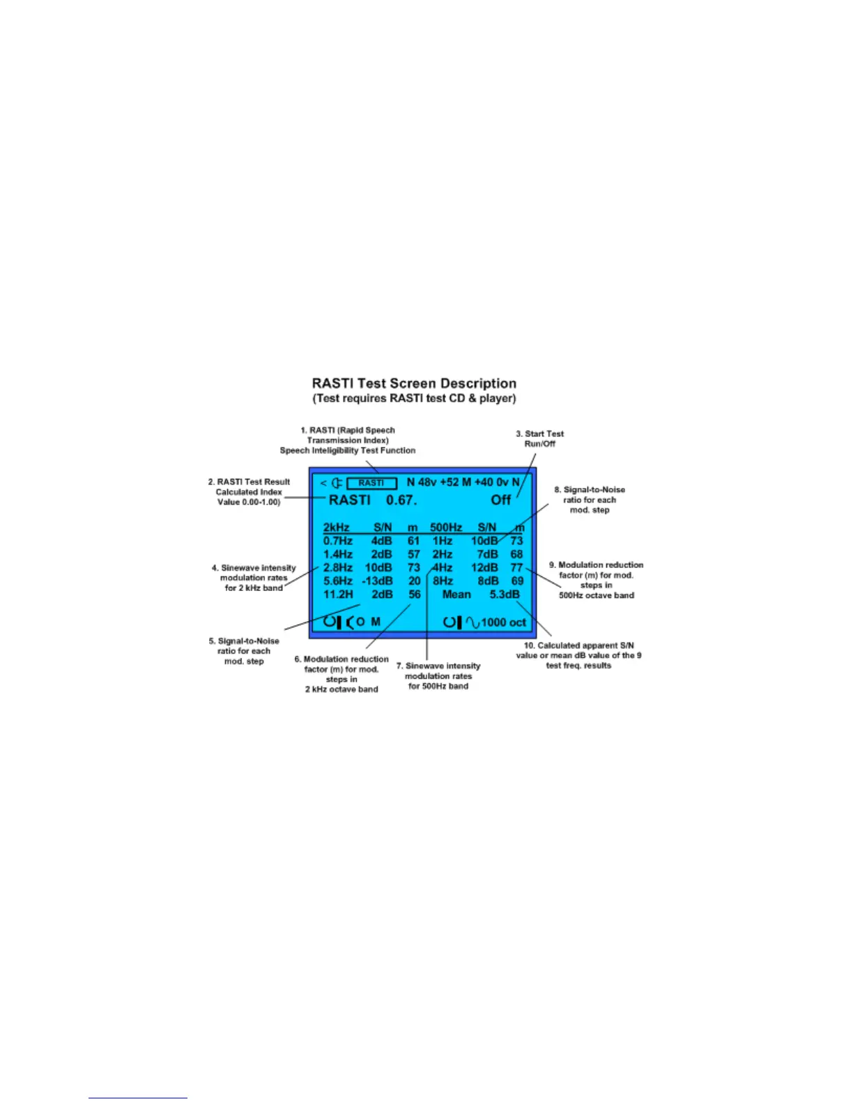2kHz octave bands. RaSTI measurements use a transmitter to output a composite signal of all 9