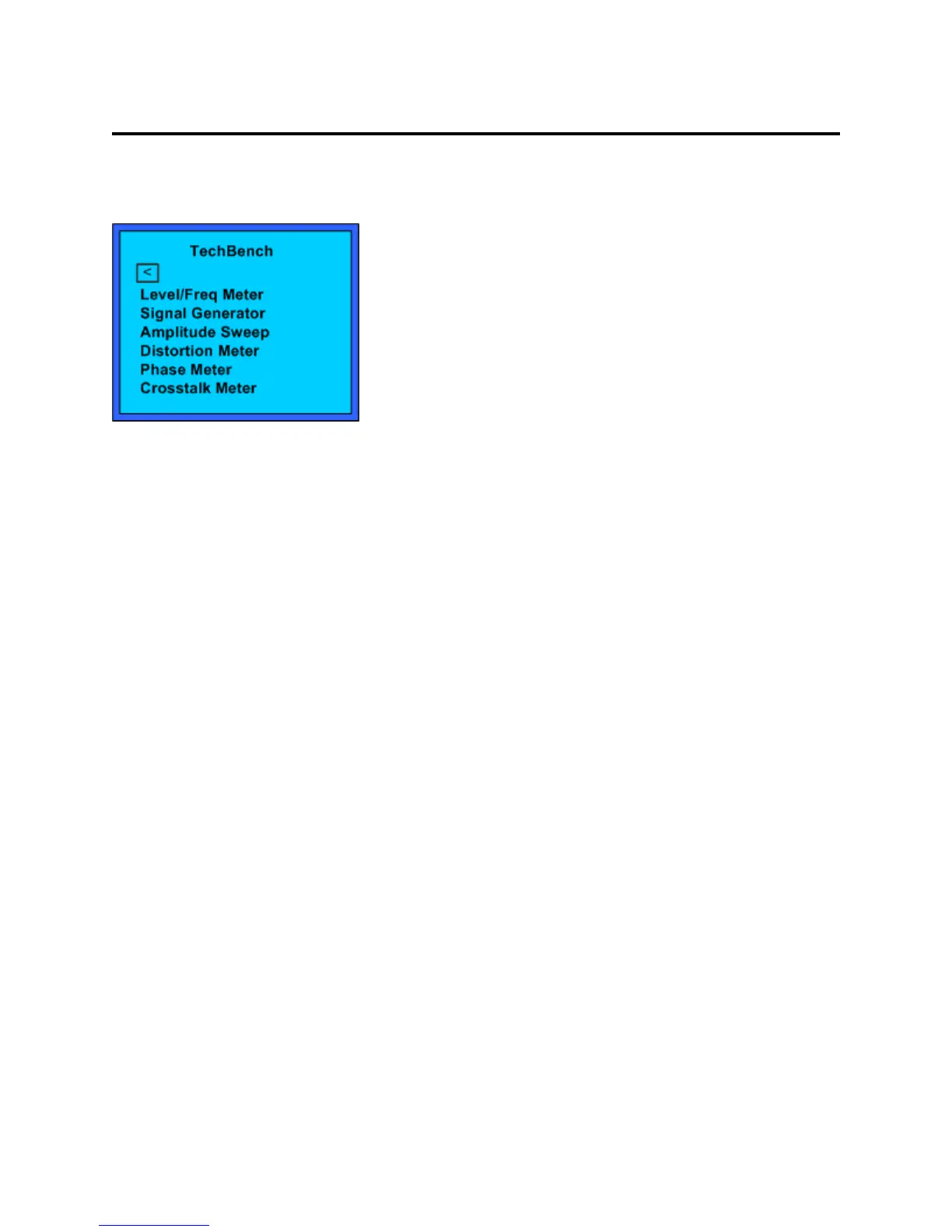 The TechBench menu contains test functions which are primarily oriented towards audio