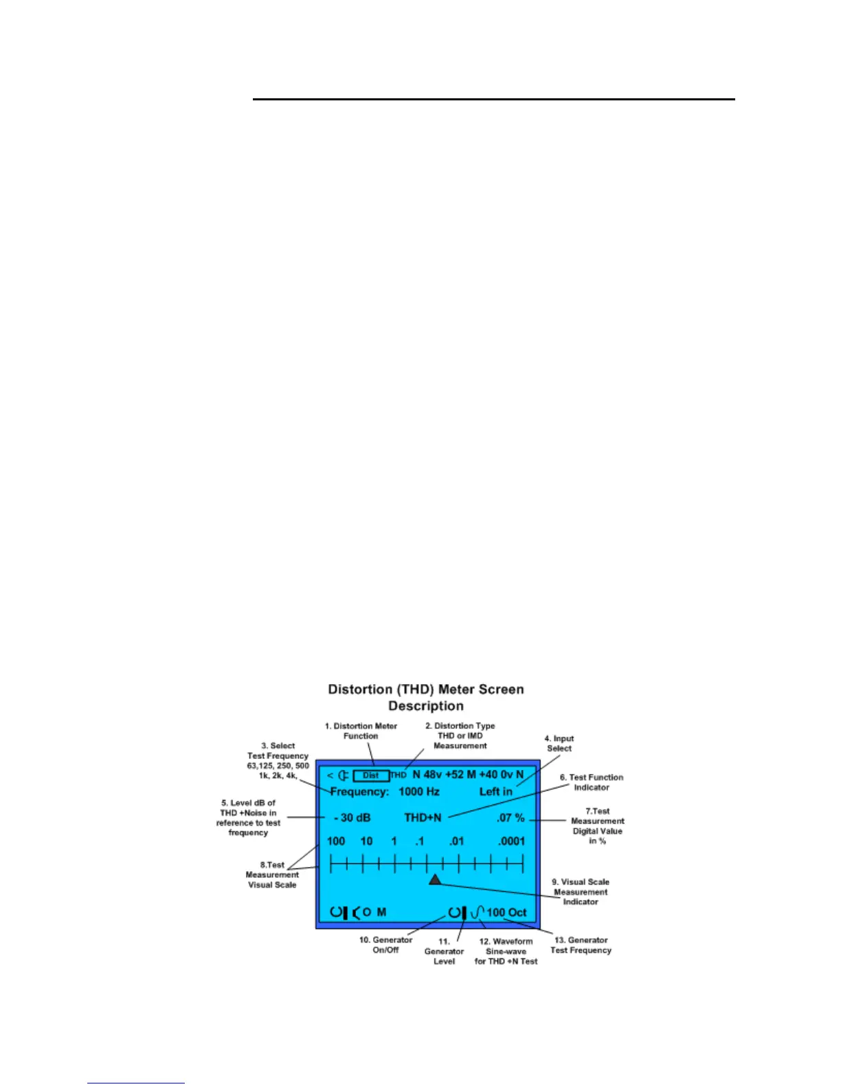 The Distortion Meter analyzes audio equipment for distortion. There are two separate distortion