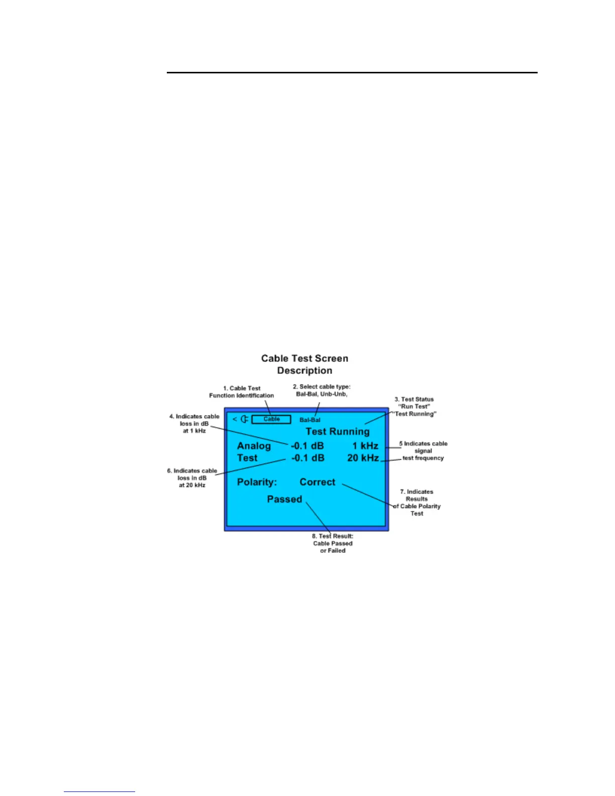 “Passed” and the internal speaker beeps momentarily. If the cable is open or the polarity