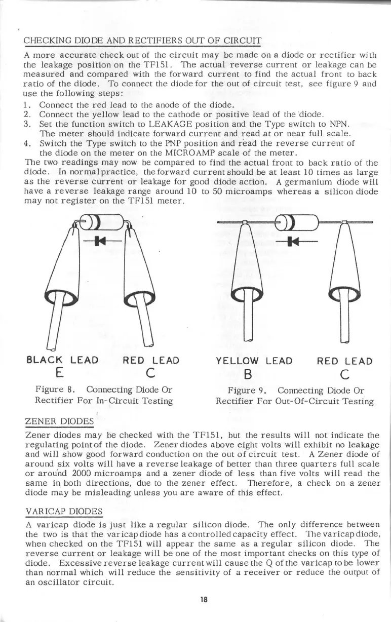Sencore TF151 - Checking Diodes and Rectifiers Out of Circuit; Out-of-Circuit Diode Test Procedure; Zener Diode Testing; Varicap Diode Testing