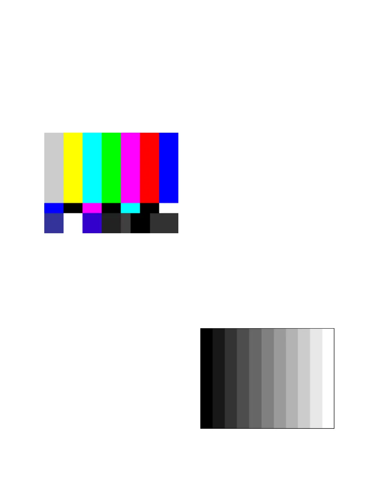 -Q, 4) black, 5) slightly blacker than black (4 IRE for NTSC, -4 IRE for other formats), 6) black,