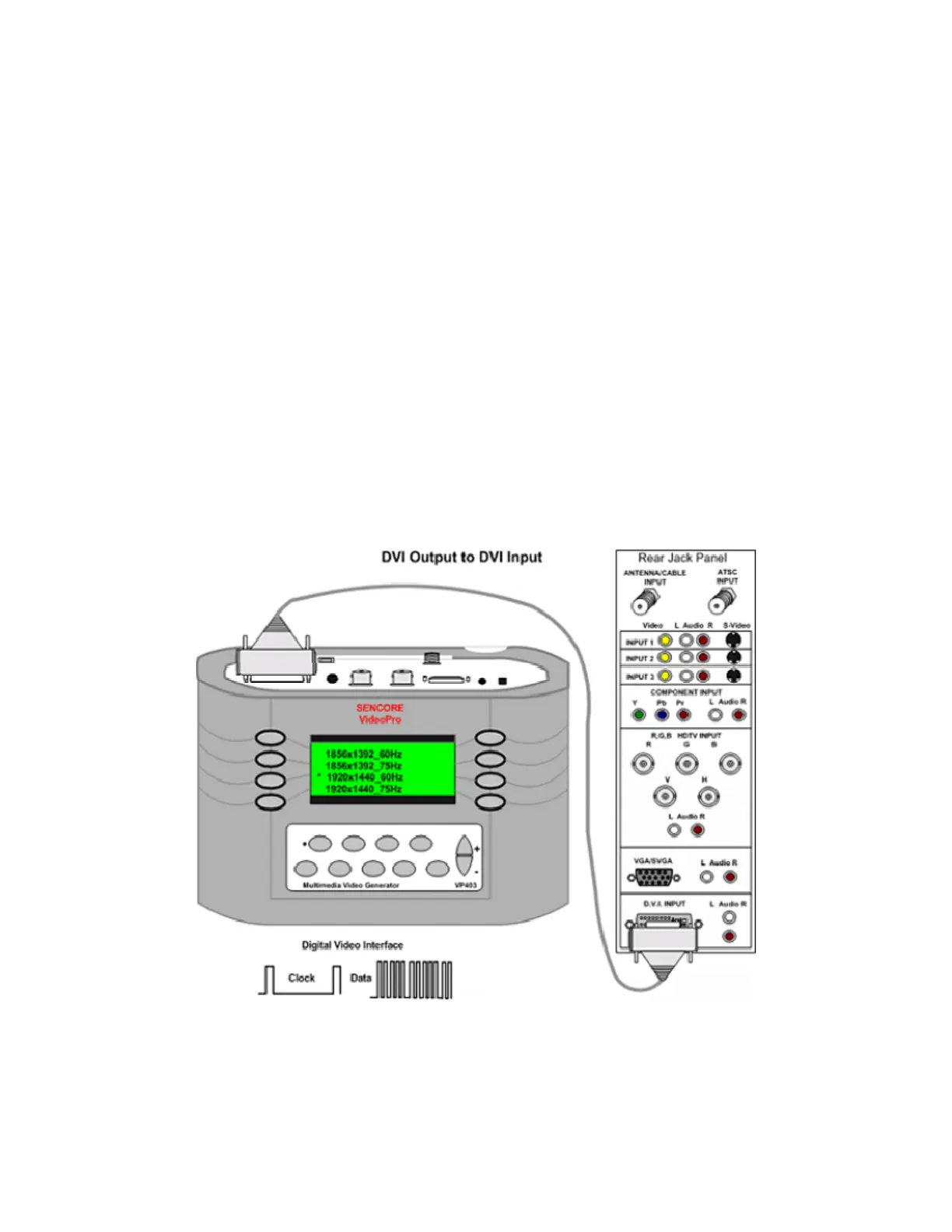 clock signals comprised of video test patterns for testing the DVI inputs.