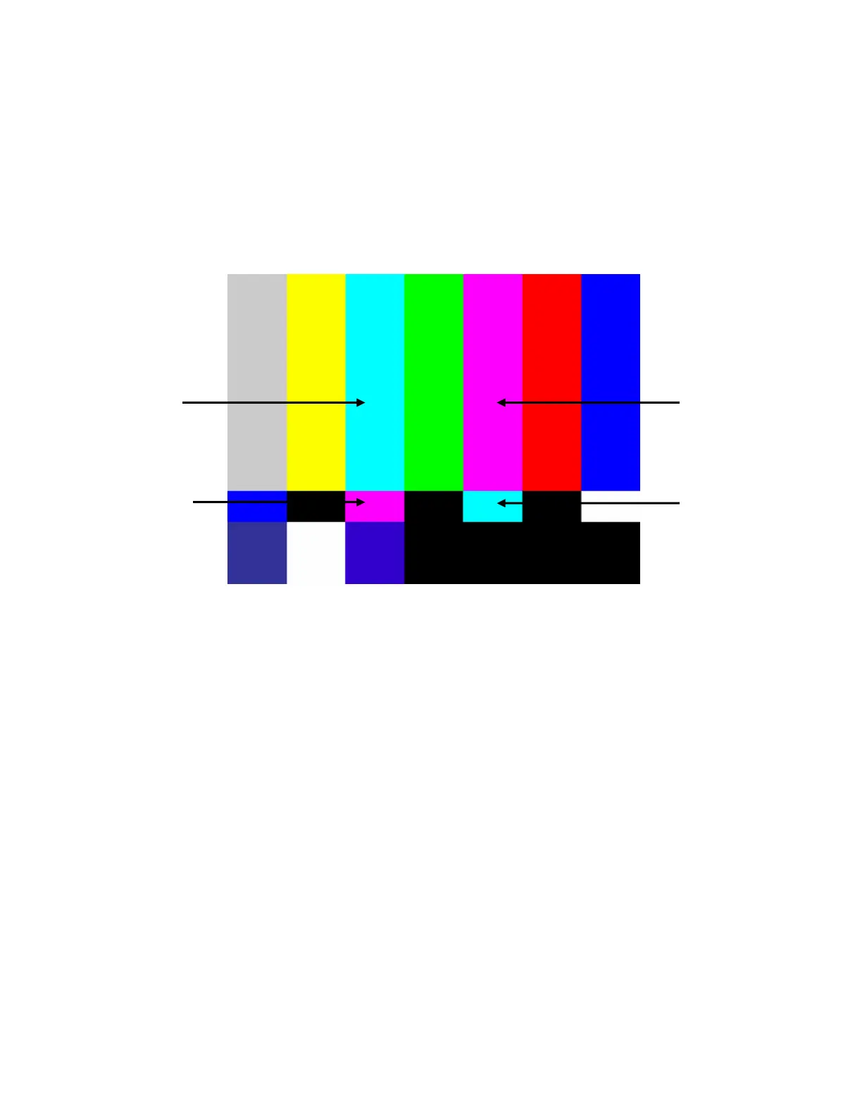 blue filter. Compare the light level of the large top cyan and magenta bars with the small bars