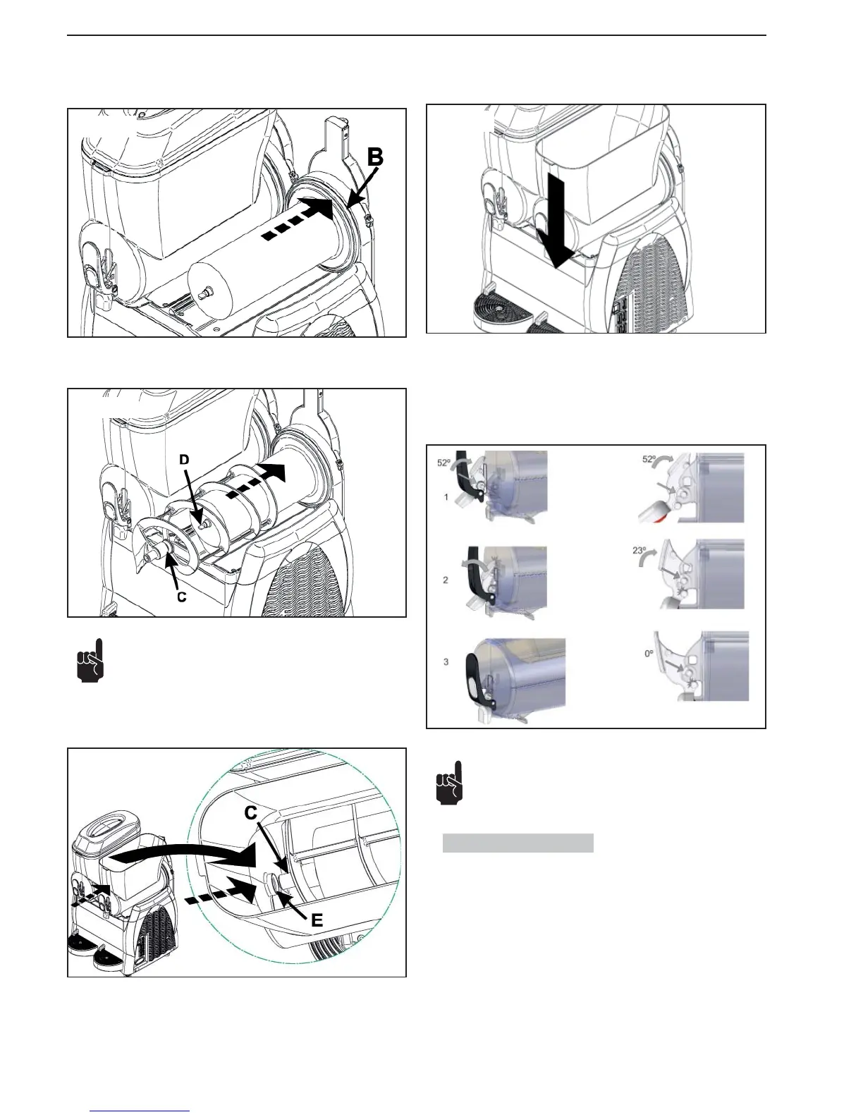 Remettez en place le réservoir ; soulevez légèrement la tête (C) de