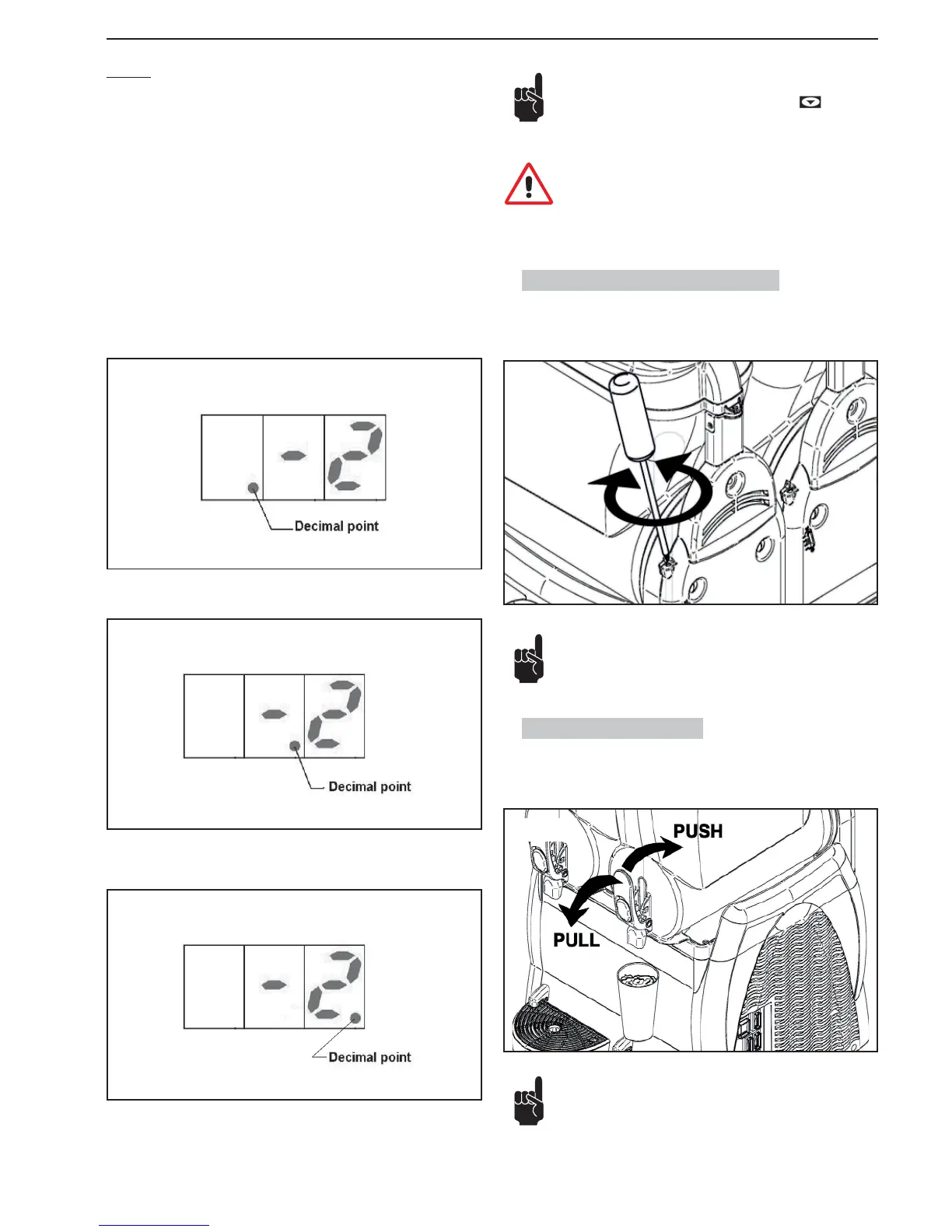 The consistency of the granita may be adjusted (+/-) by means of the screw