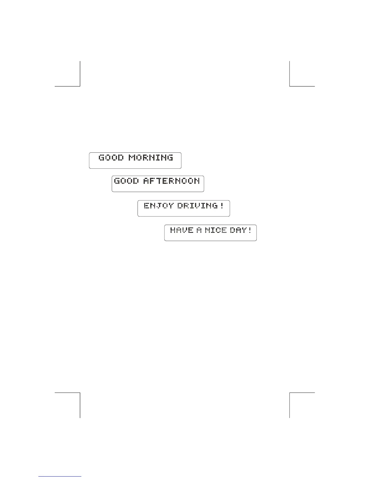 following messages if the selectable clock display feature is activated: “Enjoy Driving! Have