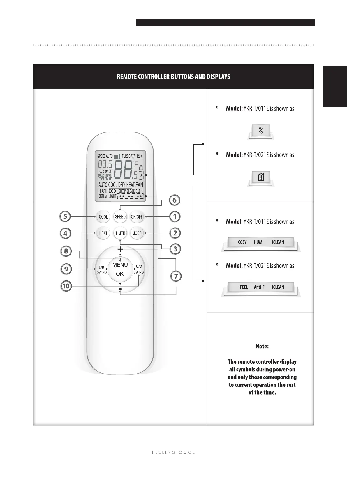 REMOTE CONTROLLER BUTTONS AND DISPLAYSREMOTE CONTROLLER BUTTONS AND DISPLAYS