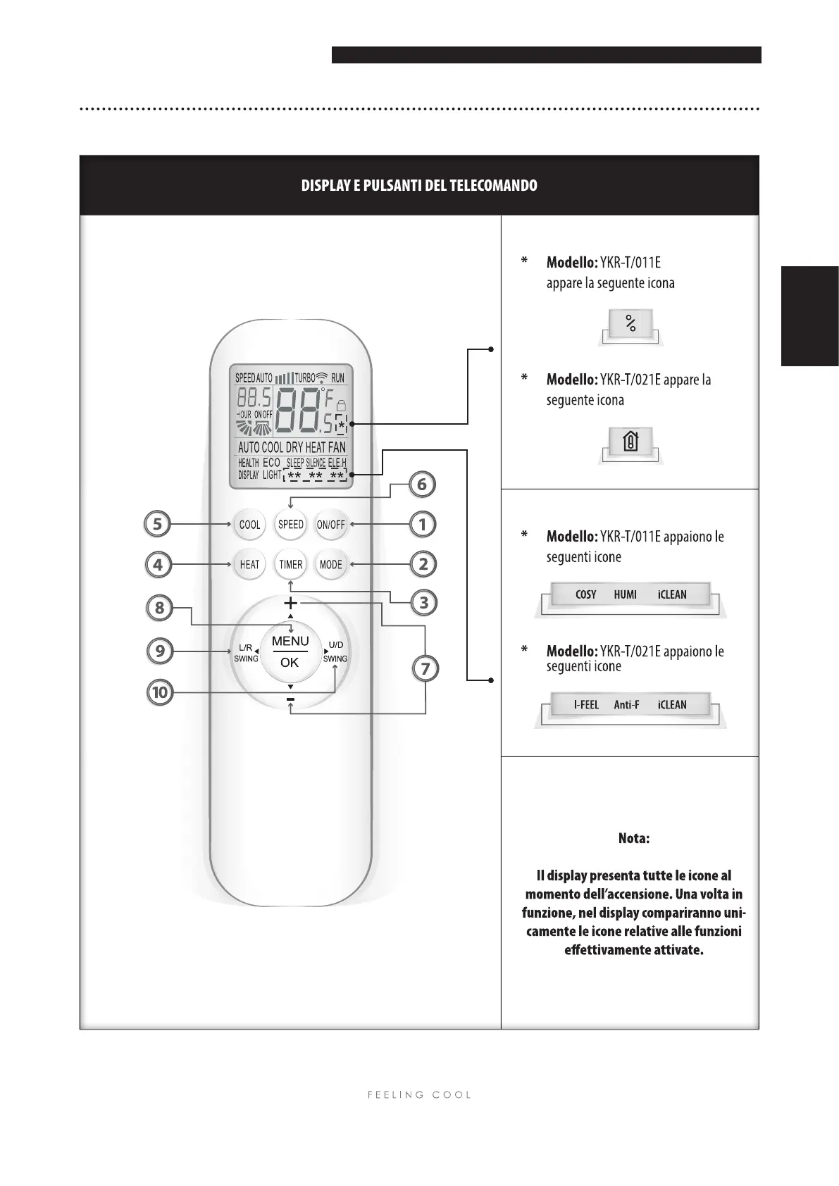 DISPLAY E PULSANTI DEL TELECOMANDODISPLAY E PULSANTI DEL TELECOMANDO