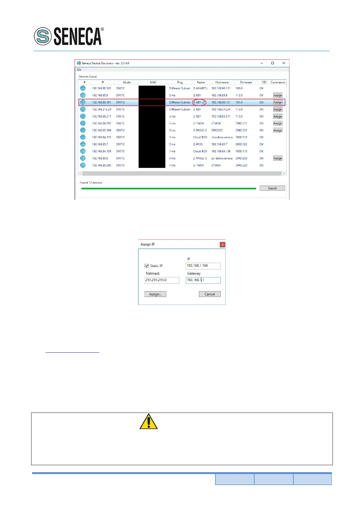 7) Force a static IP compatible with your PC: select the R-KEY-LT device with ip 192.168.90.101 and