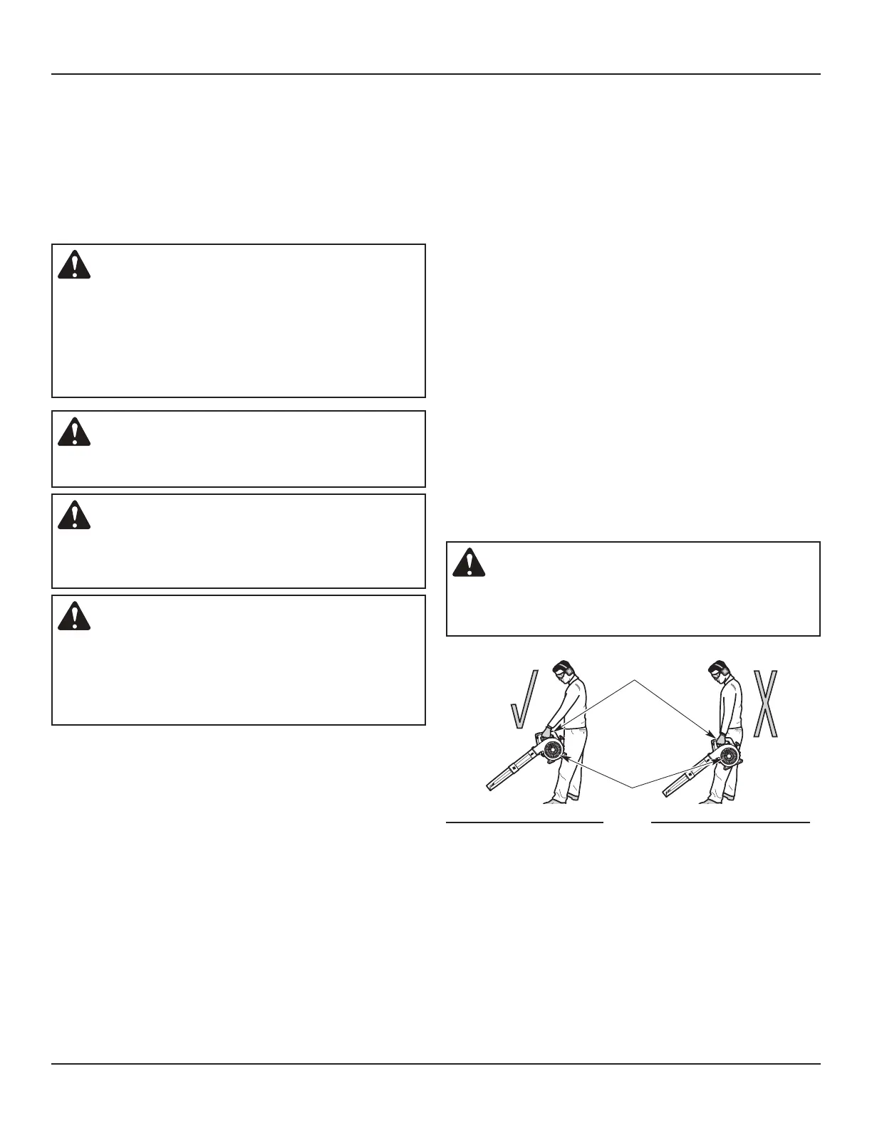 • While vacuuming or blowing debris, hold the unit with